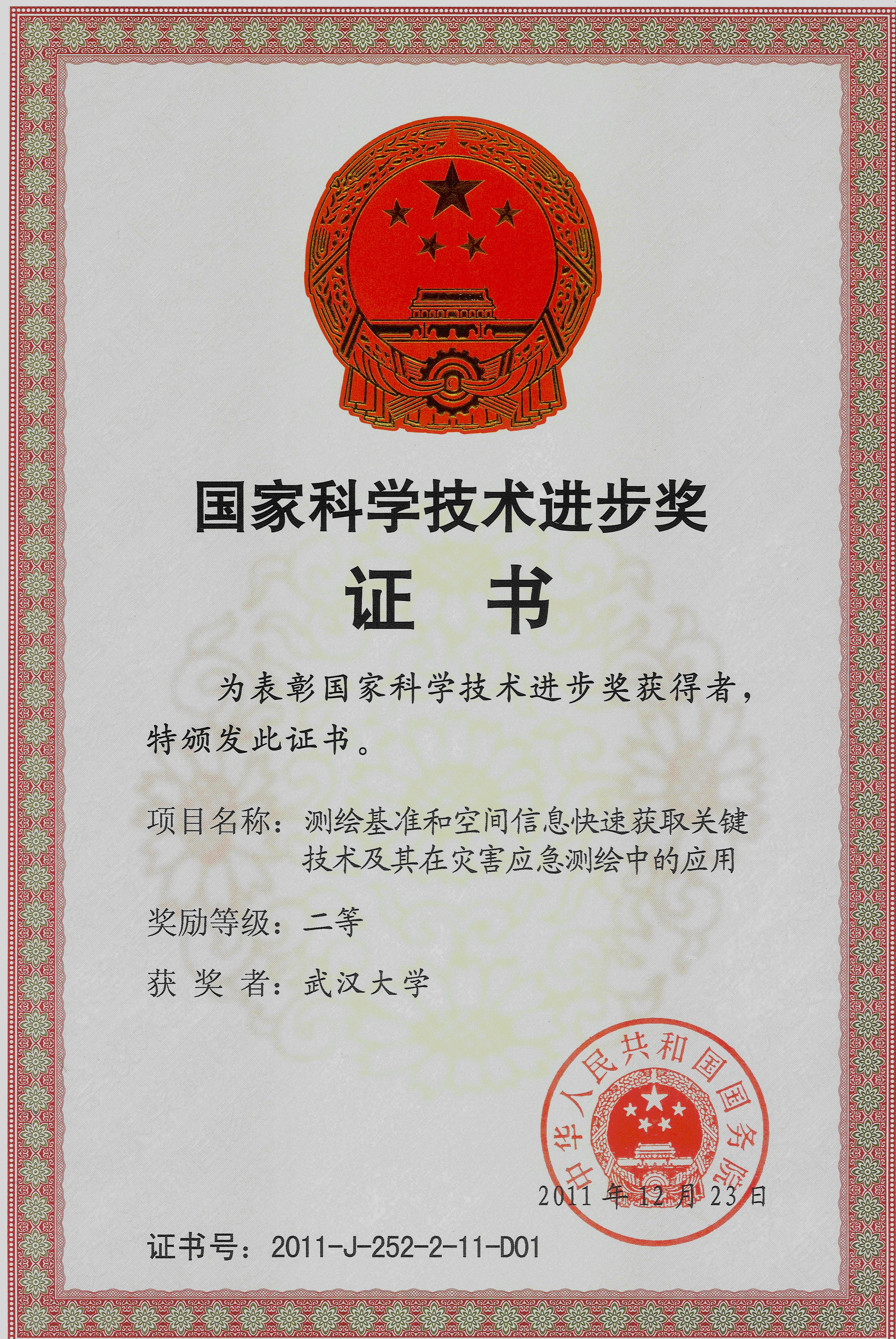 奖项名称:2011年国家科技进步二等奖
