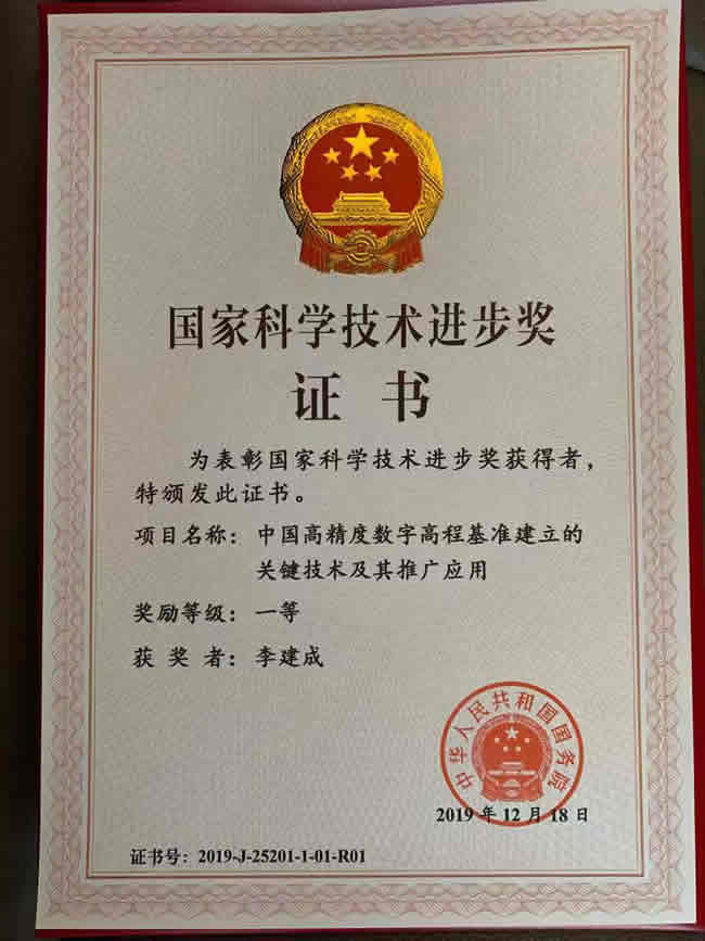 1月10日上午,2019年度国家科学技术奖励大会在人民大会堂隆重召开。习近平、李克强、王沪宁、韩正等党和国家领导人出席大会并为获奖代表颁奖。副校长李建成院士主持完成的“中国高精度数字高程基准建立的关键技术及其推广应用”项目获国家科技进步一等奖,受到表彰。该项目由脱裤吧 牵头,脱裤吧 邹贤才、姚宜斌、申文斌、魏辉分别为第二、三、四、五位成果完成人。湖北省测绘工程院、内蒙古自治区测绘地理信息局、深圳市地籍测绘大队、宁波市自然资源和规划局、浙江省第一测绘院,重庆市勘测院、重庆市国土资源和房屋勘测规划院、山西省测绘工程院、国家测绘地理信息局第一大地测量队等单位合作完成。