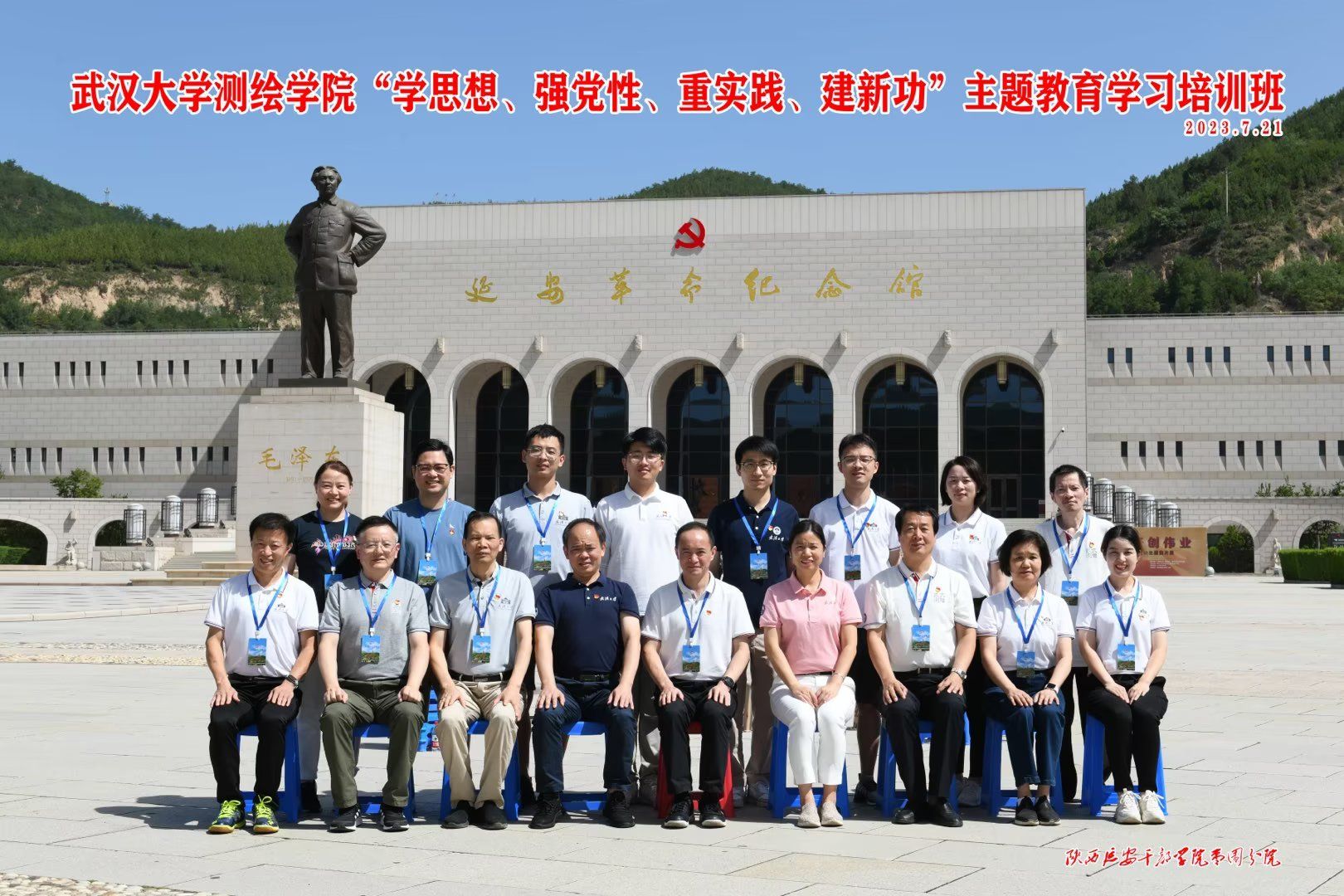 为深入开展学习贯彻习近平新时代中国特色社会主义思想主题教育,加强学院党员干部党性教育,充分发挥党支部的战斗堡垒作用和党员的先锋模范作用,积极推进学院高质量发展,7月18-22日,脱裤吧 党委书记晏金柱带领教职工党支部书记、教师党员和管理干部共17人,前往国测一大队和延安开展主题教育调研和“学思想、强党性、重实践、建新功”党性教育学习培训活动。