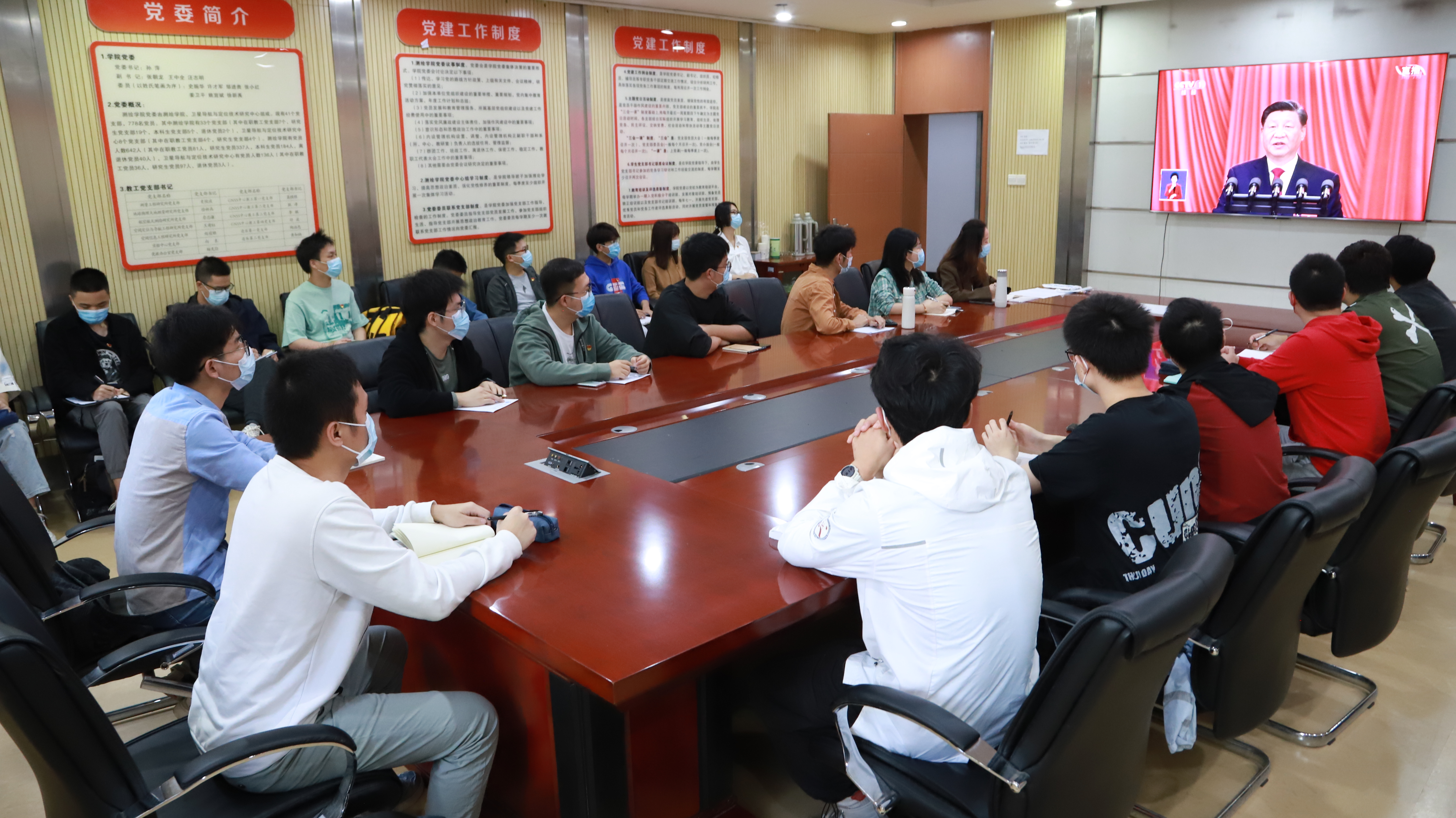 卫星导航技术研究中心研究生党员、入党积极分子等在星湖楼会议室集中观看