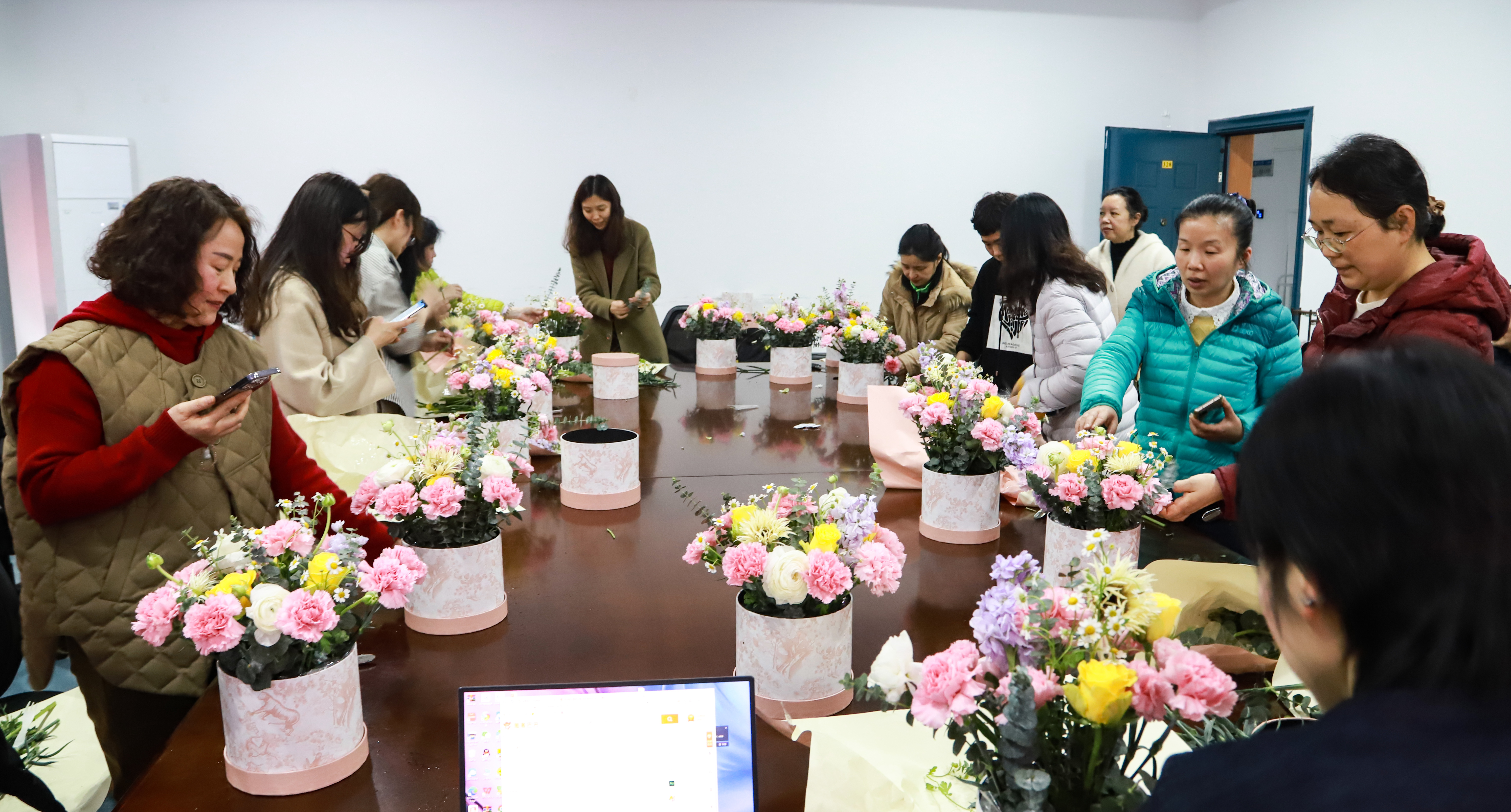 进入实操环节,每一位在场的女教职工都认真听取花艺师的介绍,纷纷拿起剪刀,按照步骤认真的进行艺术创作。大家时而商讨着花枝剪裁的高度,时而互相请教着摆插的角度,时而又切磋着花色的搭配,津津有味,兴致勃勃。活动最后,每一位到场的女教职工们都收获了一份属于自己独一无二的插花艺术品,每一份花艺作品都以不同形态展现了大家对生活的热爱。看着自己精心完成的作品,大家纷纷拿出手机拍照,记录下这一美丽瞬间。