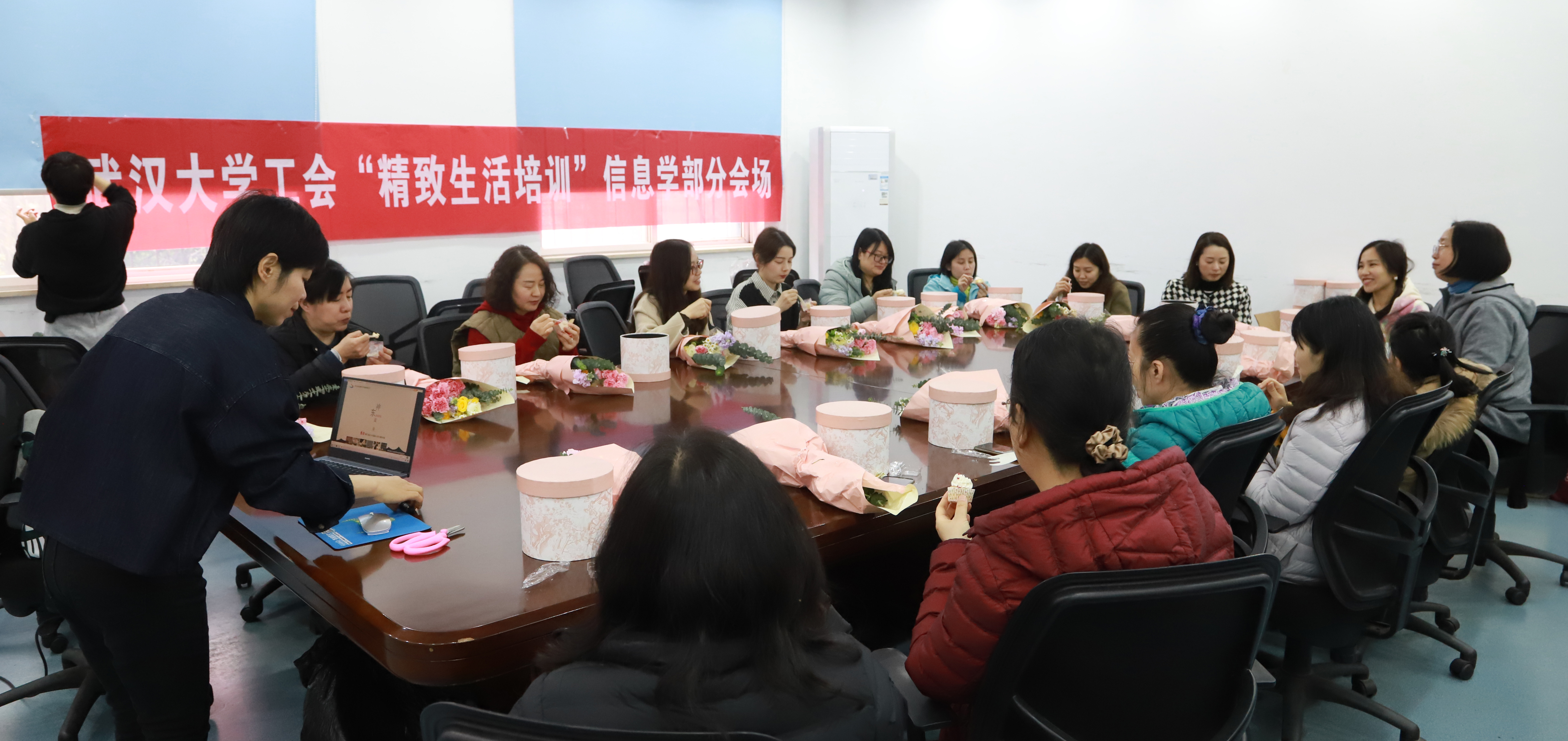3月23日下午,为丰富校园文化生活,增强教职工幸福感与归属感,彰显巾帼风采,由脱裤吧 工会主办、脱裤吧 工会承办的“脱裤吧 工会精致生活培训”——插花培训活动在脱裤吧 举行,参加活动的成员主要由脱裤吧 、遥感信息工程学院、卫星定位系统工程技术研究中心、测绘遥感信息国家重点实验室女教职工代表组成。