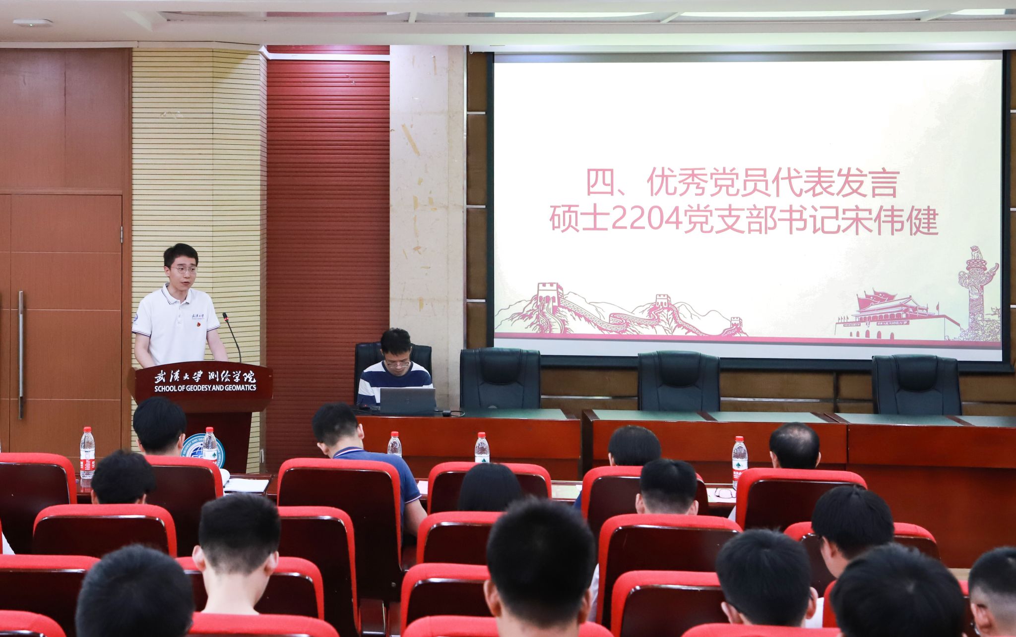 硕士生2204党支部书记宋伟健代表优秀学生党员发言。他分享了自己在政治上如何逐渐成熟,在工作中如何逐渐成长为党支部工作的行家里手,在实践中如何坚定理想信念,诠释入党初心的心路历程,表示将继续保持热爱,怀抱理想,脚踏实地,在科研、学习、生活中,尽自己最大的努力,践行一名党员的职责与使命,在热爱的岗位上做最好的自己。