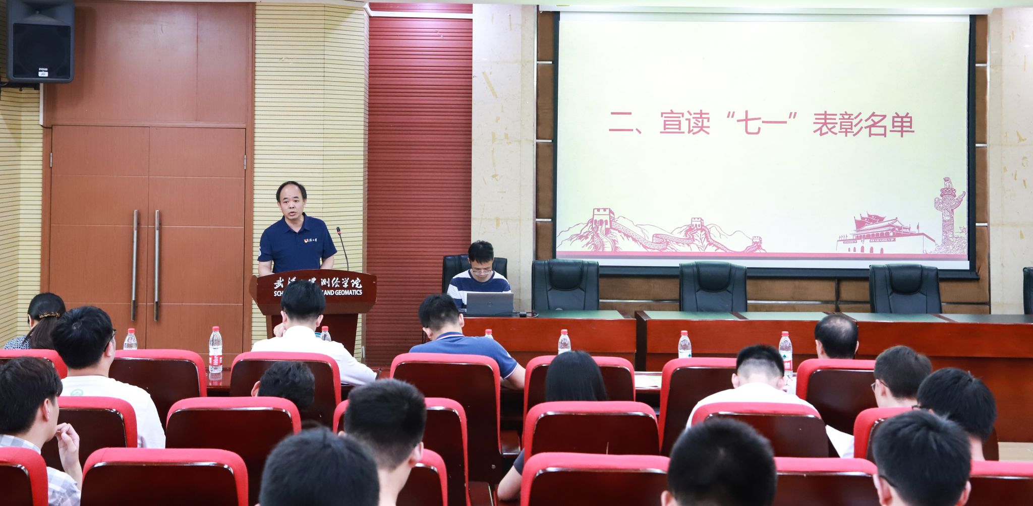 6月21日下午,学院在202报告厅举行庆祝建党102周年暨“七一”表彰大会。院党委书记晏金柱,副书记郭重奎、胡俊英、汪志明,副院长史振华、李星星等学院党委委员出席了本次活动。参加大会的还有学院辅导员等党务干部、学生党支部书记、受表彰的党员以及新发展的党员。大会由院党委副书记胡俊英主持。