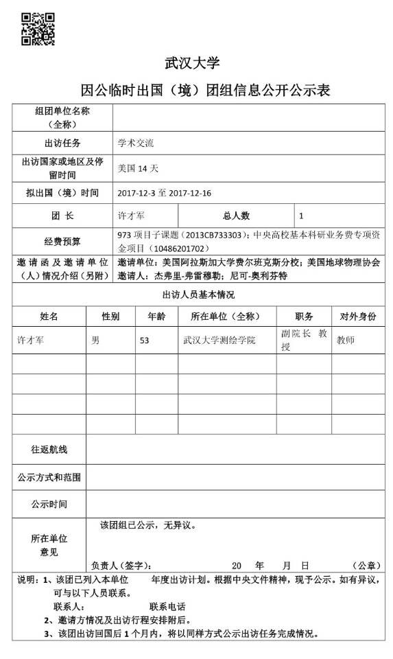 因公临时出国(境)信息公示