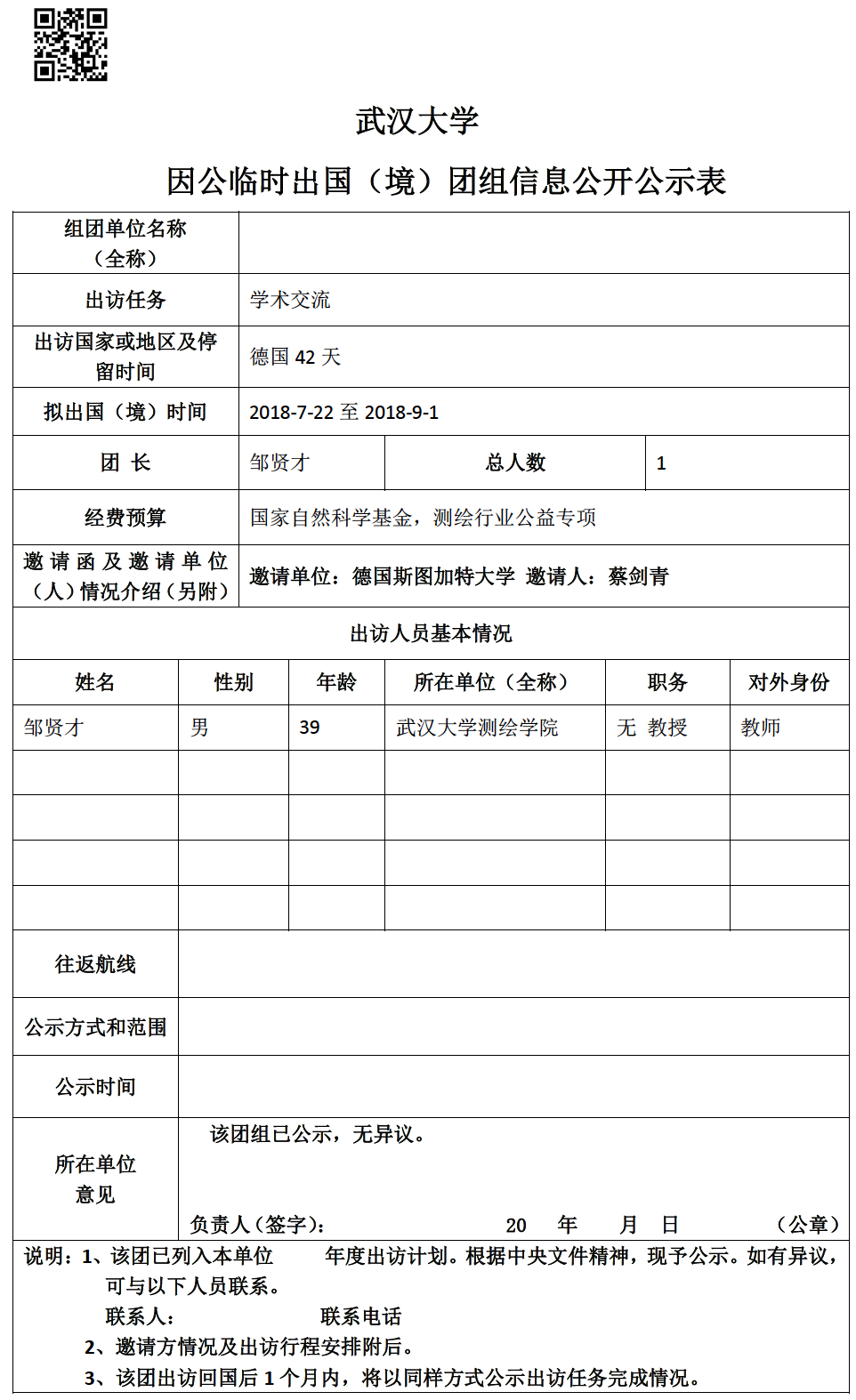 因公临时出国(境)信息公示