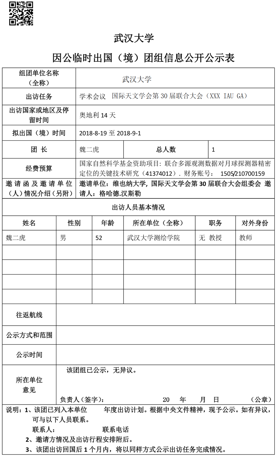 因公临时出国(境)信息公示