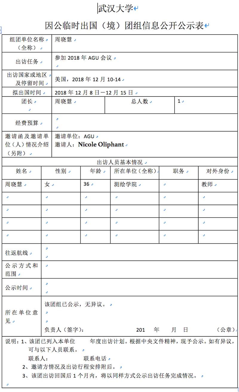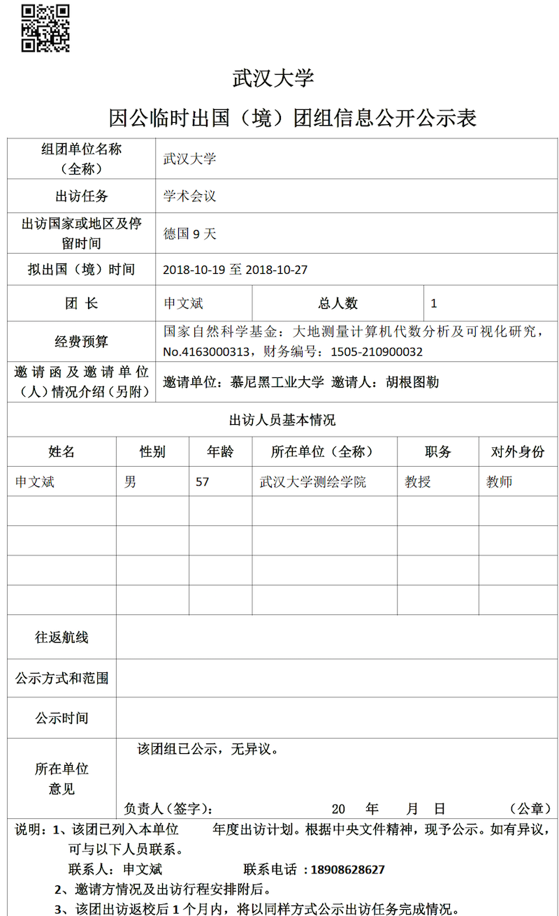 因公临时出国(境)信息公示