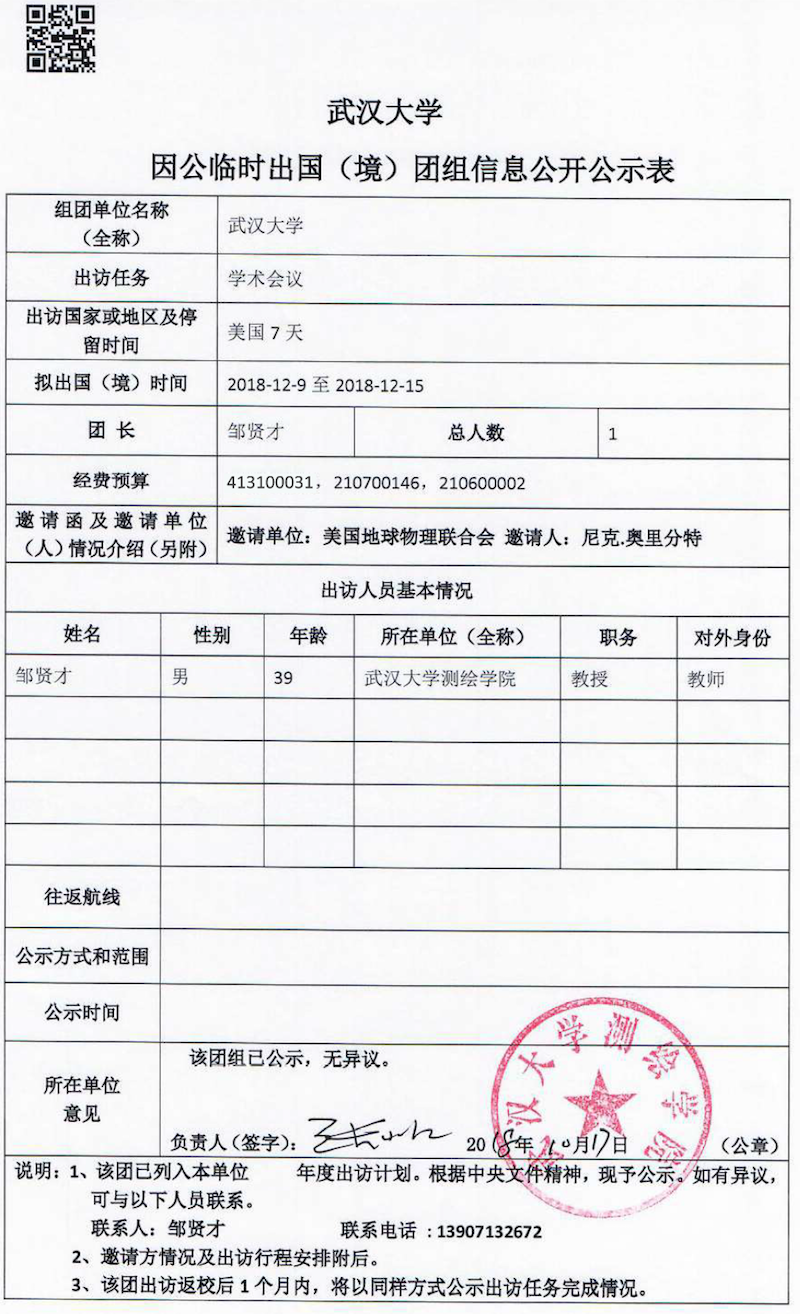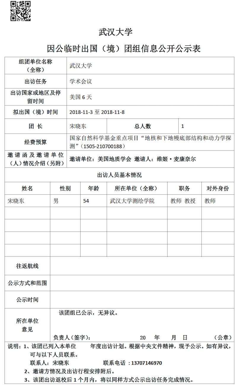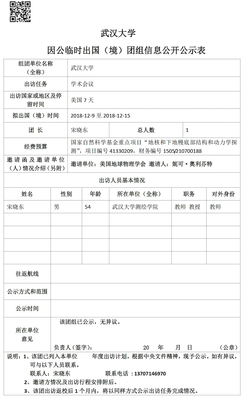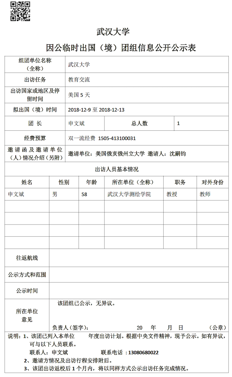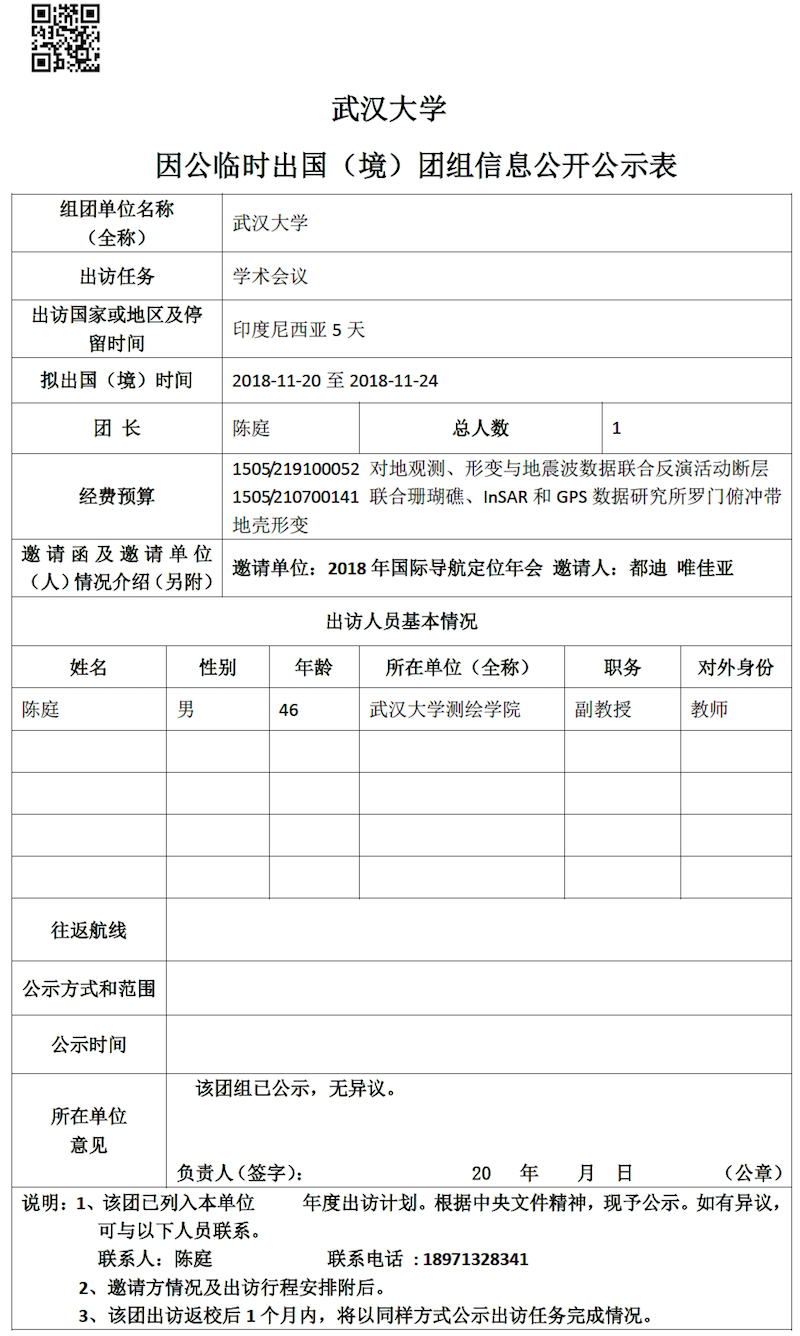 因公临时出国(境)信息公示