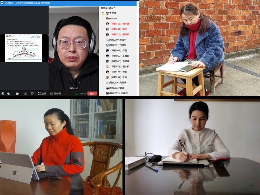为了给老师们的网络授课提供借鉴和指导,邹进贵副院长积极探索网络教学的最佳平台和方式,制作了网络教学平台使用手册和视频,并被本科院在全校进行推广。教学办褚丽丽、秦咏梅和毛玉霞三位老师虽然身处各地,但都克服各自己困难,立即投入到紧张的协调和筹备工作中。褚丽丽老师年幼的孩子发烧,到医院检查说是肺炎,她担惊受怕,焦急等待了几天的检测结果,当得知只是普通肺炎时,悬着的心才放下来,在此期间,她从邻居家借来电脑开展工作。毛玉霞老师春节在农村老家,没有宽带,没有电脑,全靠手机办公,信号不好,有时晚上开网络会议,不得不到楼顶一蹲就是几个小时,她到村委会借来纸笔,在屋外摆开小方凳当办公桌,搜集整理同学们在加群,选课等方面的问题和意见建议。秦咏梅老师由于连续多日的工作,身体有点吃不消,但她还是坚持每天工作到很晚,进行各类开课情况的统计、各专业课程的教材信息统计等,并主动与本科生院和出版社联系,协商争取能够提供电子版教材给学生使用。