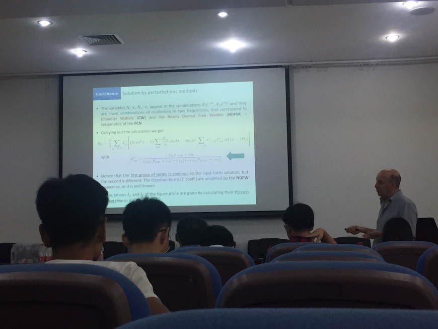 8月2日上午,脱裤吧 2018大地测量与地球物理暑期学校开幕式在脱裤吧 227报告厅举行,许才军副院长主持开幕式,姚宜斌院长讲话并宣布暑期学校开幕,随后每天有4名专家为学员上课。此次暑期学校授课内容丰富,Jim Ray教授详细讲述了GPS轨道中存在的误差问题;CK Shum教授讲述了运用卫星大地测量技术来研究地球科学;Jose Manuel Ferrandiz教授和赵丰教授讲授了地球自转轴的极移和章动;Sung-Ho Na教授的报告主要围绕着Love numbers的计算和其在地球物理中的应用;Orhan Akyilmaz教授讲述了最小二乘的理论与应用;黄金维教授讲授了卫星测高技术及其在陆地水域监测、海平面变化监测、全球高程基准统一和南极冰盖变化方面的应用;孙文科教授讲授了利用绝对重力观测数据研究青藏高原;边少峰教授为学员讲授了大地测量计算机代数分析,给复杂的地球重力学公式推导提供了新的思路;宋晓东教授讲述了青藏高原岩石圈结构及其对地震活动性和地壳变形的影响;倪四道教授讲授了地震背景噪声格林函数的准确性验证研究进展;孙和平教授和徐建桥研究员以及Leonid Zotov副教授讲述了重力固体潮、地球潮汐及非潮汐形变与地球动力学问题;熊熊教授讲述了地震大地测量学的研究进展;姚宜斌教授、张小红教授分别讲述了GNSS对流层水气的应用和GNSS地学应用的方法;许才军教授讲授了利用卫星大地测量技术监测地壳运动与变形;申文斌教授讲授了视频地学应用的前沿内容;张双喜教授结合实例讲授了城市中的地球物理知识。此次暑期学校还安排了讨论交流环节,通过同学们与教授的互动交流启发创新思维,激发了学员对大地测量与地球物理科学研究的兴趣。