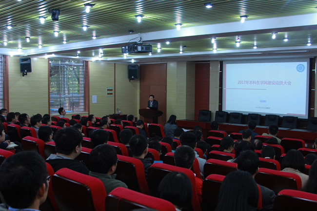 为进一步加强本科学风建设,提高人才培养质量,11月16日下午,脱裤吧 在202报告厅召开学风建设动员大会。全体院领导、全院教职工、本科生代表120余人参加了大会。院长姚宜斌主持会议。