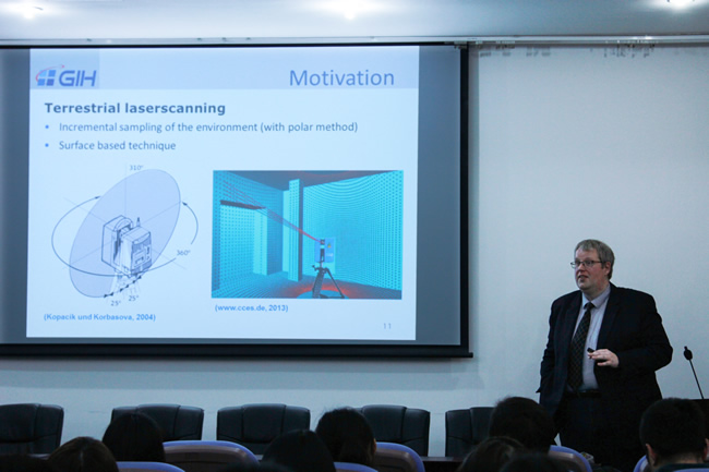 11月30日,汉诺威大学土木工程与大地测量学院教授,工程测量研究所所长Prof. Dr .- Ing.Ingo Neumann应邀来脱裤吧 作了题为“Newest developments in kinematic laser canning for industrial applications”的学术报告。