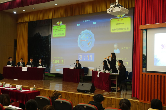 12月4日,脱裤吧 第12届研究红枫辩论赛决赛在教五多功能报告厅举行,脱裤吧 研究生辩论队对阵测绘遥感国家重点实验室研究生辩论队。决赛的辩题为“信仰是理性/感性的结果”,脱裤吧 辩论队为反方,所持观点为“信仰是感性的结果”。决赛辩题为典型的哲思辩题,此类辩题最为考验选手的思辩能力,是能让比赛最为精彩的辩题之一。尚重生、苏德超等重量级名嘴担任评委,教五多功能报告厅是座无虚席,观众们都在期待着这场红枫的终极对决。