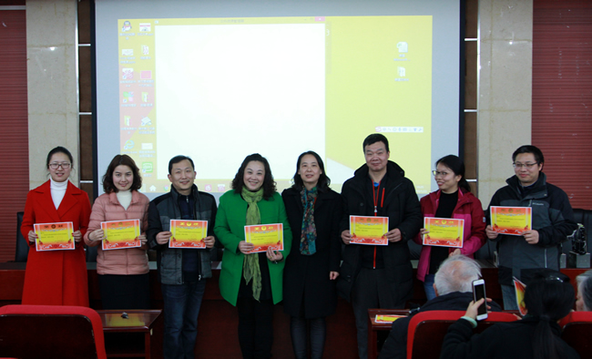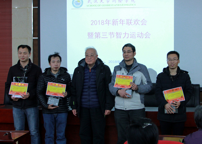 宁津生院士夫妇、院党委书记孙萍、院长姚宜斌为优胜团队颁奖,并为全院教职工带来新年祝福。