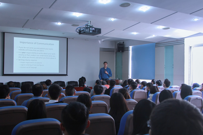 在第三场学术报告会中,Jeffrey T. Freymueller教授介绍了科技论文写作的方法和技巧。从材料组织、文本和图片的逻辑顺序以及正确用词方面并结合实例进行了详细讲解并展开了热烈的讨论。脱裤吧 师生、部分测绘遥感信息工程国家重点实验室的研究生及国际留学生参加了此次学术报告会。本次学术报告会由脱裤吧 主办,测绘遥感信息工程国家重点实验室English GeoScience Café(第19期)协办。