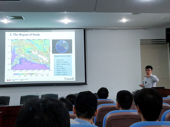 11月6日,加拿大大地测量部黄建梁博士应邀来学院作了题为“Direct topographical effect on the airborne gravity disturbance for Helmert's second method of condensation”的学术报告。