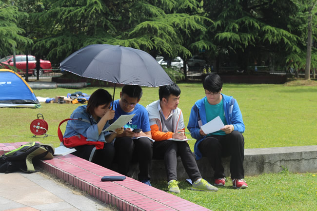 比赛于上午七时许正式开始。各支参赛队伍需要在规定时间内完成规定项目的数据测量与处理。每一支参赛队伍都全神贯注,投入到紧张的比赛当中。架设、观测、读数、记录、迁站,所有的参赛队员都尽可能地做到最迅速、最准确。各个团队的成员之间也配合默契。外业测量一结束,参赛选手们便立刻投入到内业计算之中,对测量数据进行处理。比赛中,同学们严格遵守操作流程与规范,以确保数据的准确性。