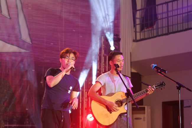 老师们用动情的歌声诉说着与同学们四年相处的点点滴滴,不管身在何方,我们都是相亲相爱的一家人。台下欢呼不断、掌声雷动,大家随着歌声挥舞手中的荧光棒,微信墙瞬间变成“表白墙”,大家为相伴四年的老师们送上最真挚的表白。