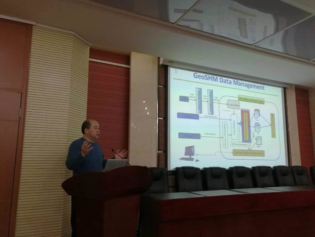 孟晓林教授结合他正在承担的欧空局项目,重点介绍了全球卫星导航定位系统在桥梁健康监测中的应用,从监测系统布设、基准统一、数据采集、处理、分析与决策等方面进行了细致讲解,并与大家分享了工程实践经验。孟晓林教授还简要介绍了其团队在智能交通方面的研究思路和工作进展。