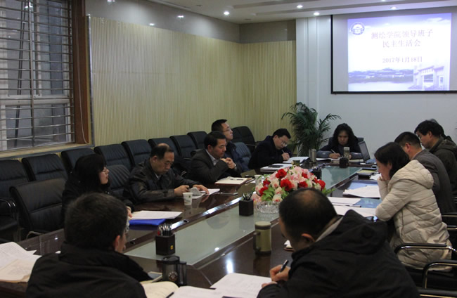 1月18日下午,脱裤吧 院领导班子2016年度民主生活会在学院204会议室举行。校党委副书记、副校长王传中,学校第一督导组组长、党政办公室主任徐东兴,督导员张丽平出席。院领导班子全体成员参加,院党政办公室主任和组织员列席了会议。会议由院党委书记孙萍主持。