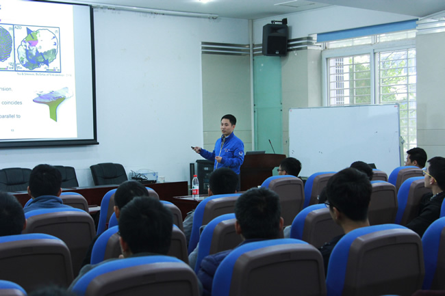 许文斌助理教授作了题为“Satellite radar and optical remote sensing studies for volcanoes in the divergent plate boundary”的学术报告。许文斌博士通过InSAR和光学遥感数据,重点介绍了红海及其周边火山喷发机理的相关研究,得到火山喷发过程中火山岩的流动路径、覆盖范围、覆盖厚度和喷发量等信息。