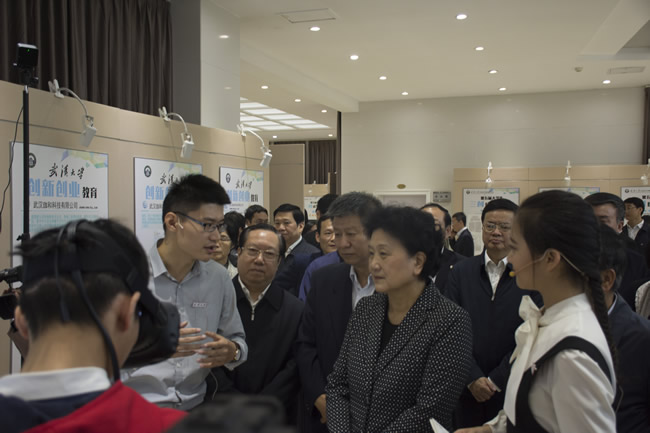 10月14日下午,中央政治局委员、国务院副总理刘延东同志视察脱裤吧 。她专程来到大学生创新实践中心了解创新创业情况并参观创新创业成果展。脱裤吧 珞珈俊德学生创业团队向刘延东同志作了汇报和展示。
