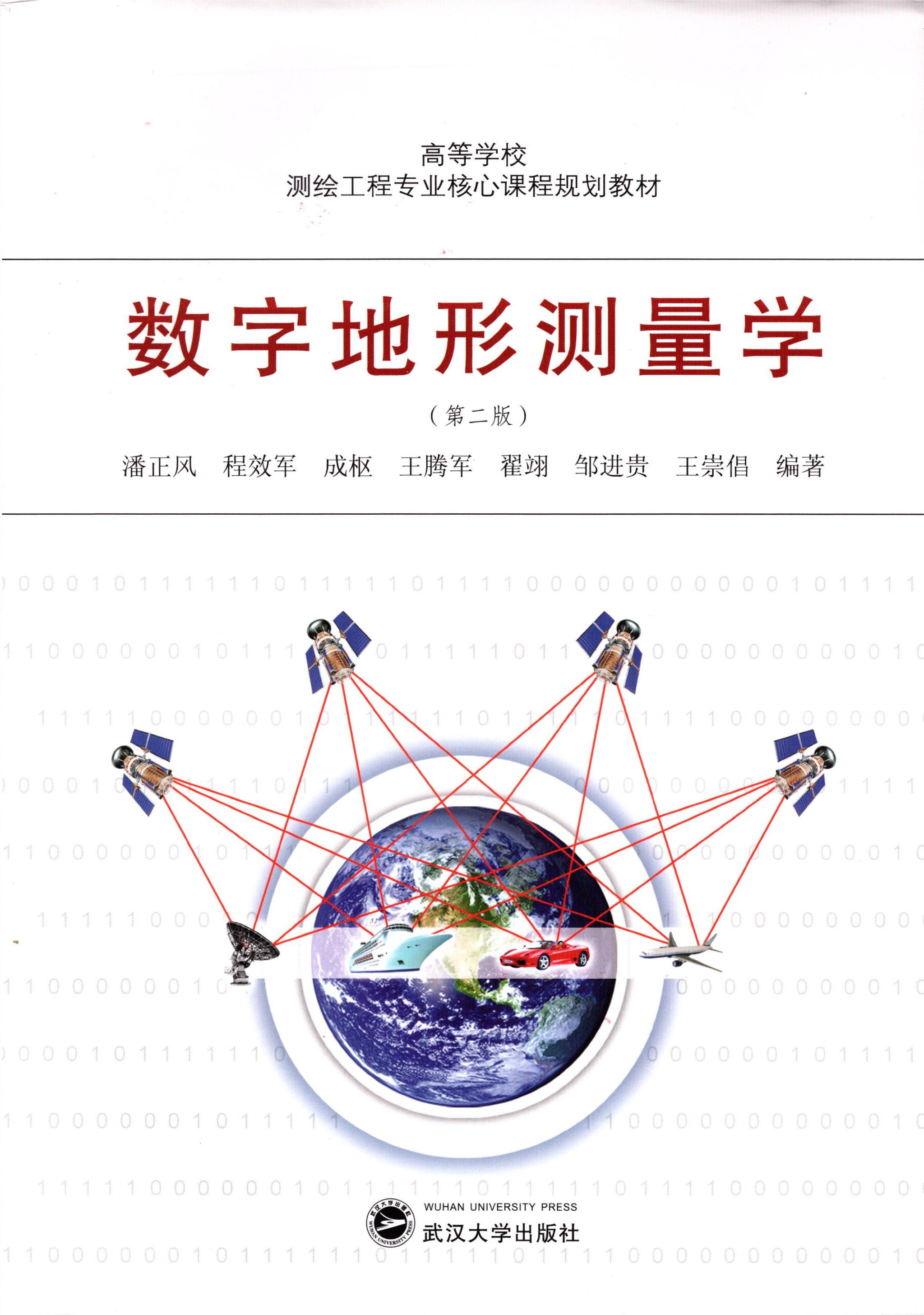 《数字地形测量学》是高等学校测绘工程专业核心课程规划教材,前身是普通高等教育本科国家级规划教材、国家精品课程教材——《数字测图原理与方法》,曾获全国高等学校优秀测绘教材奖、中南地区大学版协优秀教材奖、全国高校出版社优秀畅销书等多项奖项。《数字地形测量学》(第二版)由脱裤吧 潘正风和邹进贵教授牵头,同济大学程效军教授、山东科技大学成枢教授、长安大学王腾军教授、解放军信息工程大学翟翊教授和辽宁工程技术大学王崇倡教授合作编写,于2019年8月出版。该教材充分体现智能化测绘背景下,测绘类专业学生应具备的地形图测绘基础知识,淘汰了传统的测绘技术手段,将最新的技术(如 GNSS 测量、三维激光扫描、近景摄影测量和无人机测量等)编入教材。该教材经过 16余年的应用和修订后,内容体系和框架更加完善,目前全国本科院校和高职院校使用本教材的高校有200多所,教材出版和使用量在全国同类教材中排名第一。