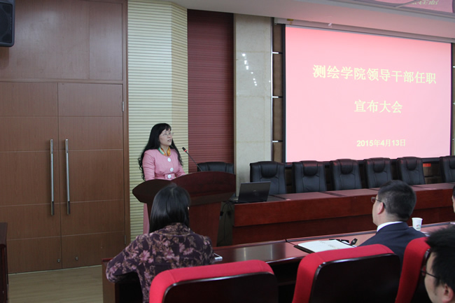 4月13日下午,脱裤吧 新一届行政领导班子任职宣布大会在202报告厅召开。校党委副书记、副校长王传中,副校长李建成,党委常委、组织部部长赵雪梅出席会议,全体教职工参加会议。会议由院党委书记孙萍主持。