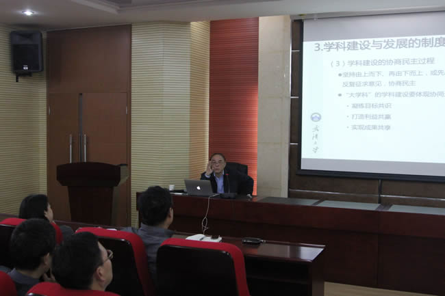 “学科建设理念是大学办学理念最深层最内核的内容,称得上是创建世界一流大学之魂”,通过引用和阐释美国当代著名教育学家伯顿•克拉克的思想,刘经南院士娓娓道来,侃侃而谈,从学科建设与发展的大学基础、现代理念、制度保障、组织保障以及人才保障五个方面对大学学科建设的目标以及方法进行解读。他指出,大学是一个学术共同体,现代大学的使命,也是学科建设的使命。要完成国家与社会赋予其的责任,首先要确定自身的目标与定位,在此基础上,秉承教学、科研、社会服务、文化传承与创新一体化的理念,积极探索人才培养的新模式,培养符合国家及社会发展需求的人才。他强调,要厘清公立学校共同体架构中政治、行政、学术以及监督这四大权利体系的关系,探索大学综合改革新机制,为学科建设与发展提供制度保障与组织保障。他还指出,作为大学教师以及管理者,要具备责任心和团队合作精神,这是决定学科建设与发展成就的重要因素。