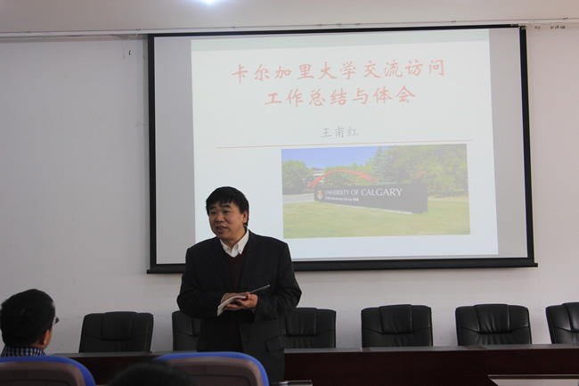 王甫红老师于2013年2月—2014年2月在加拿大卡尔加里大学(University of Calgary)测量工程系进行了为期一年的学术访问。他首先介绍了卡尔加里大学测量工程系以及加拿大其他开设测绘工程专业高校的基本情况,然后重点就个人近年来的学术交流和科研工作进展情况等进行汇报。