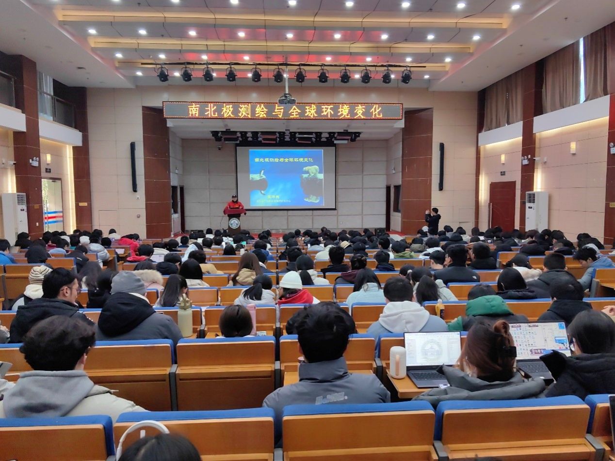 12月20日下午,《大地测量学基础》课程组特邀王泽民教授为学院270名本科生讲授《南北极测绘与全球环境变化》。王泽民老师参加中国南极科学考察及中国北极黄河站科学考察各四次,开展了南极内陆冰下地形测绘、冰川运动监测、南极大地基准建设和北极斯瓦尔巴地区冰川运动及冰川形态变化监测工作。