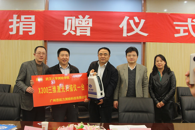 3月17日下午,广州思拓力测绘科技有限公司总工郭四清校友一行来脱裤吧 ,捐赠一台X300型三维激光扫描仪。院长李建成、院党委书记孙萍、院长助理闫利以及部分师生等参加捐赠仪式。