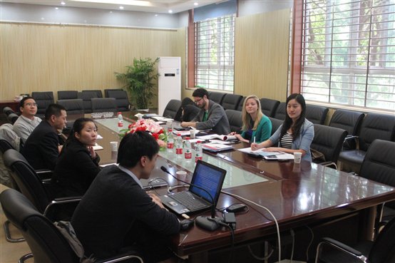 4月11日,美国俄亥俄州立大学学生事务管理人员丹尼尔和摩根到脱裤吧 调研学生资助工作。