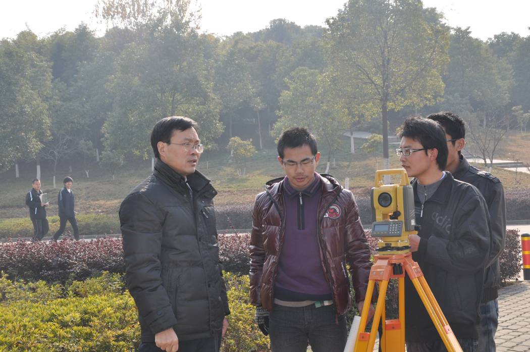 12月19日,脱裤吧 负责本科生思想教育和教育教学的主管领导张仁杰副书记、郭际明副院长,以及学科办汪志明主任、学工办徐晖老师一行四人前往脱裤吧 大花岭实习基地看望正在进行“数字测图实习”的测绘工程专业2010级的同学们和实习指导老师们。