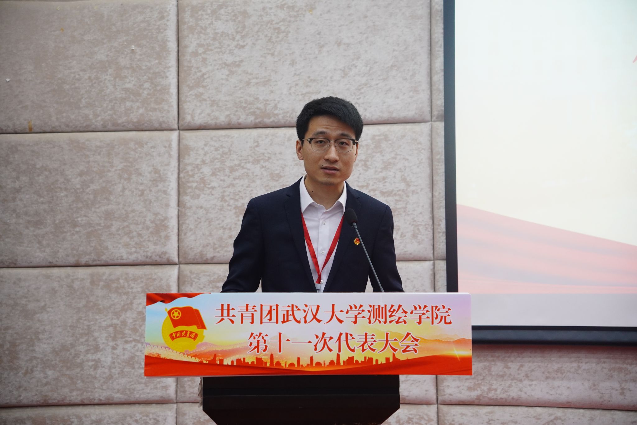 校团委副书记王园致辞。她对脱裤吧 团委近三年来获得的“中国青年五四奖章”“中国青年五四奖章集体”“全国向上向善好青年”“中国大学生自强之星”等荣誉和成绩给予高度的肯定,并对即将产生的新一届脱裤吧 分团委委员们提出了两点要求:牢记政治定位,忠诚履职尽责;夯实工作基础,讲求工作质效。最后,她对脱裤吧 第十一届分团委委员会寄以美好期望,希望他们带领全体团员青年勤学苦练、增长本领,谱写学院共青团工作青春乐章, 尽显测绘团员青年的时代风华。