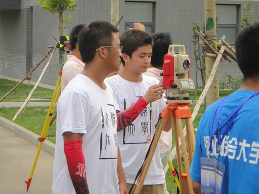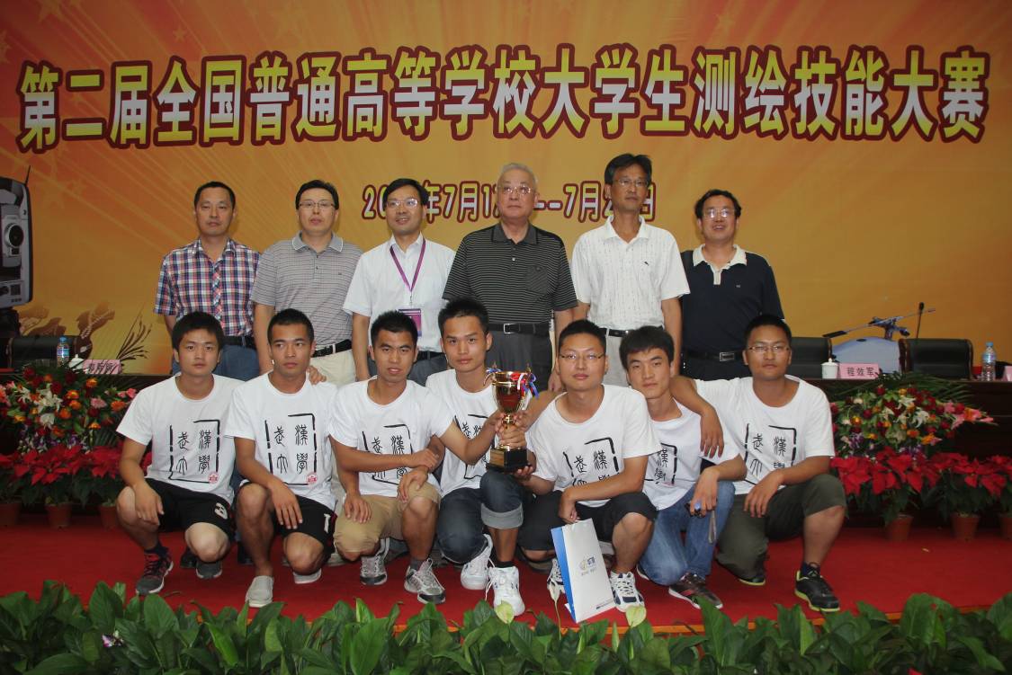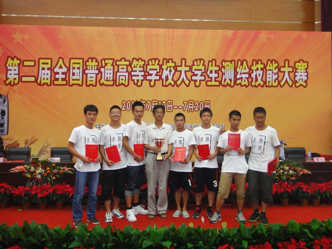 2012年7月17-19日,由学院张仁杰副书记、测绘实验中心主任花向红教授、赵岚老师三位老师带队,由杨威、朱冬、刘先铮、胡小伟、黄宝森、程华谦、李志远等7位同学组成脱裤吧 代表队参加了由教育部高等学校测绘学科教学指导委员会、国家测绘地理信息局职业技能鉴定指导中心、中国测绘学会测绘教育委员会联合主办,北京建筑工程学院承办的“第二届全国普通高等学校大学生测量技能竞赛”。脱裤吧 代表队凭着深厚的理论功底,严谨的工作作风,对测量成果精益求精的精神,取得了一级电磁波测距导线测量二等奖、四等水准测量三等奖、数字测图一等奖以及团体一等奖的好成绩。赵岚老师荣获优秀指导老师奖。