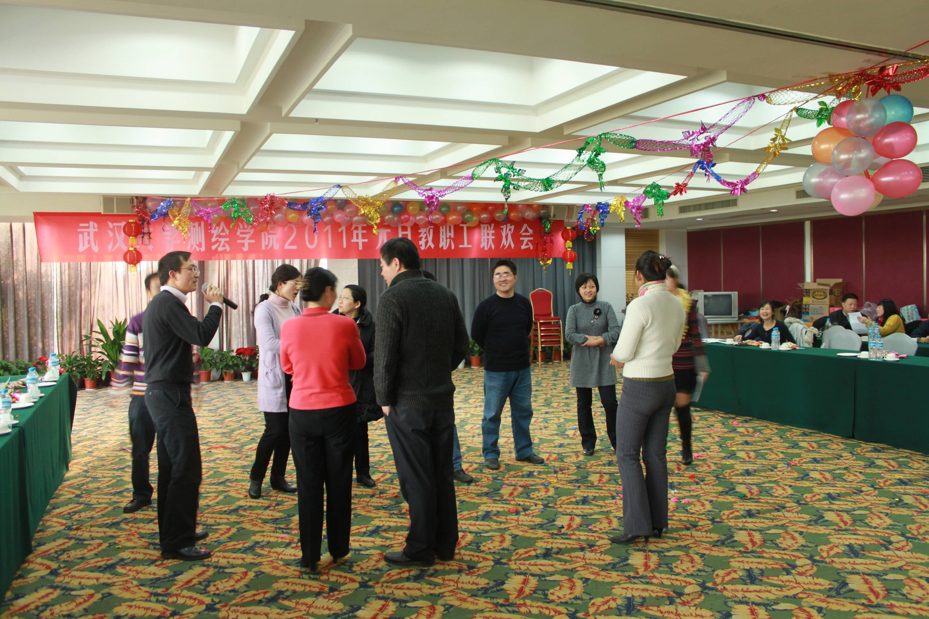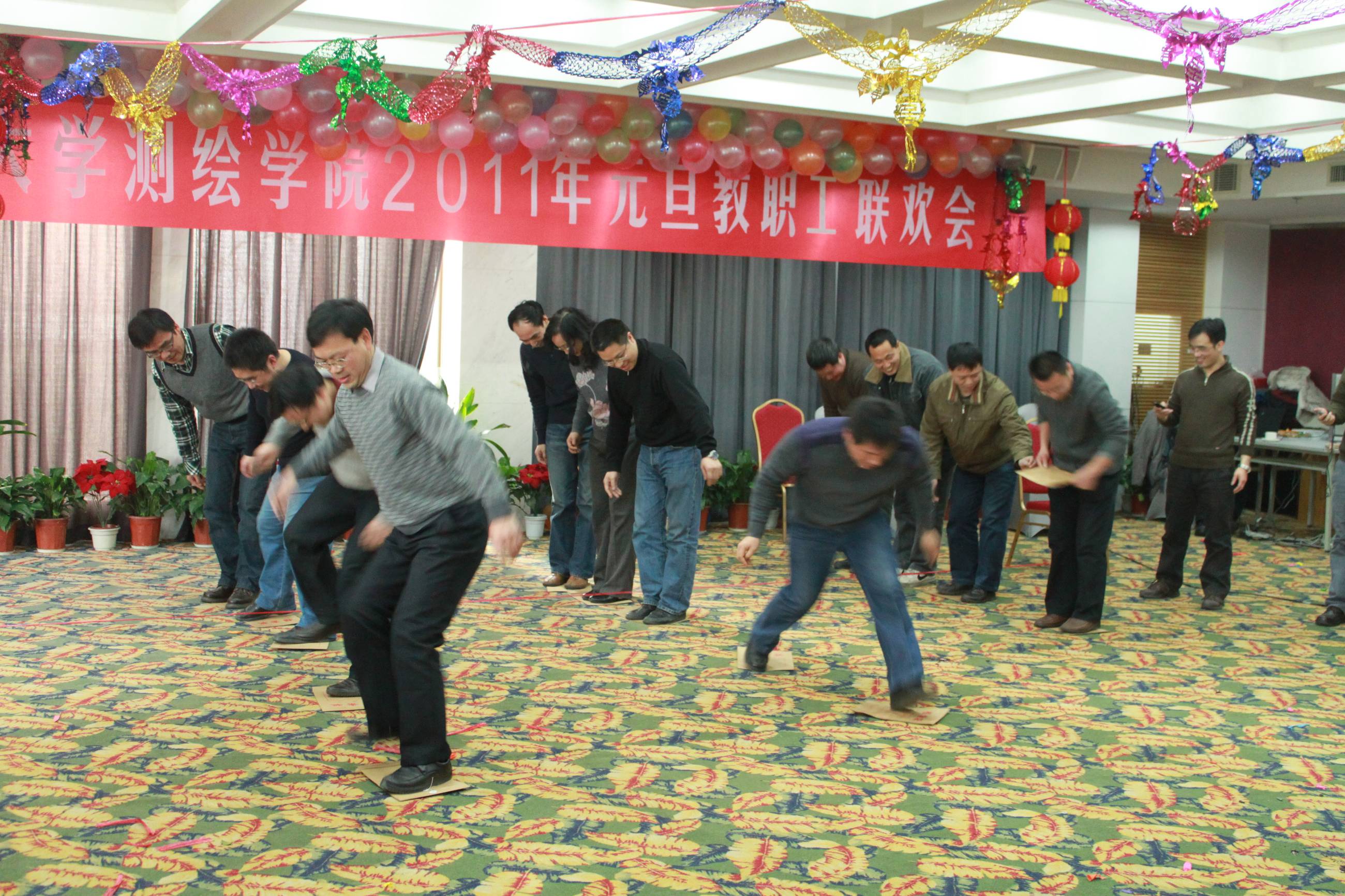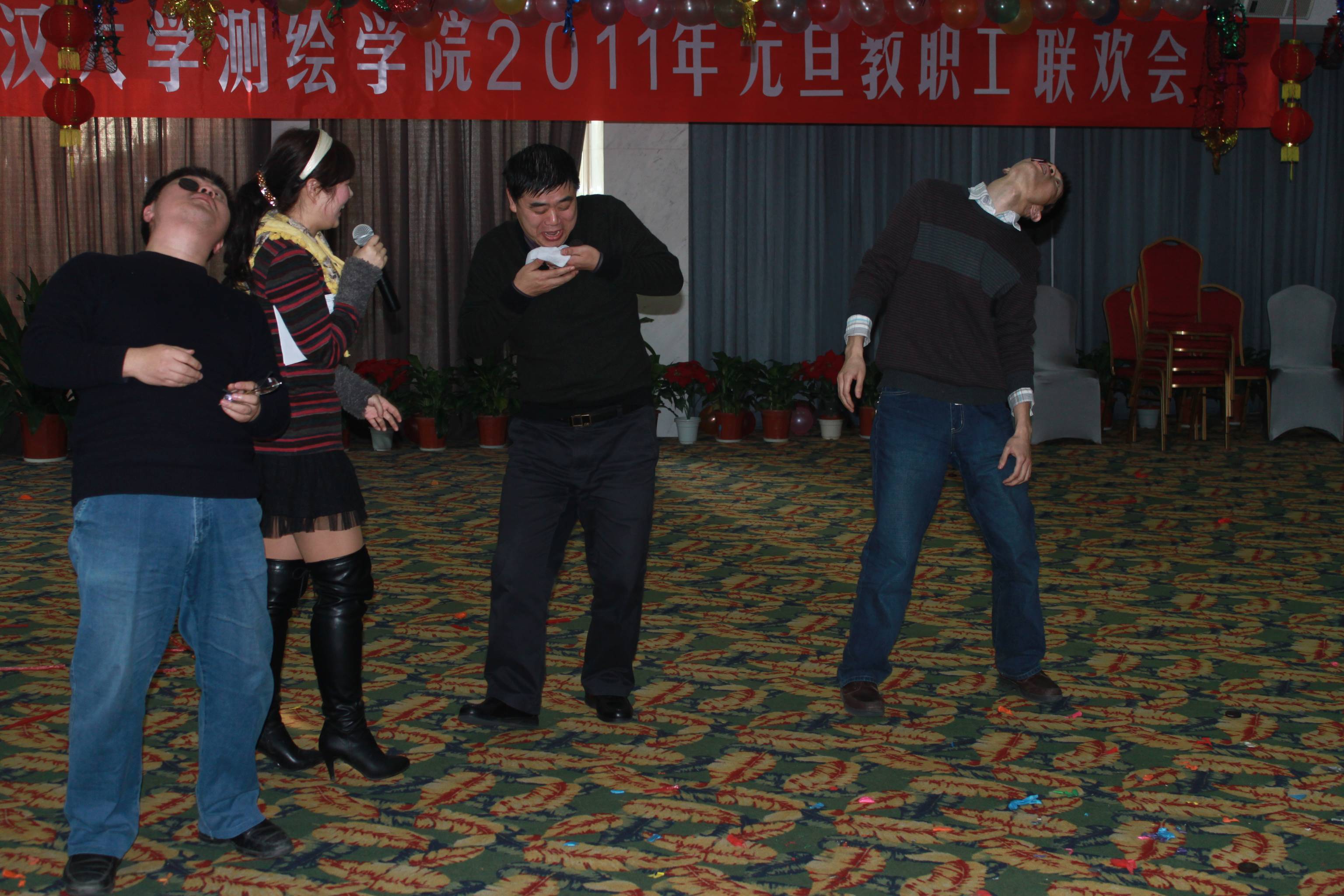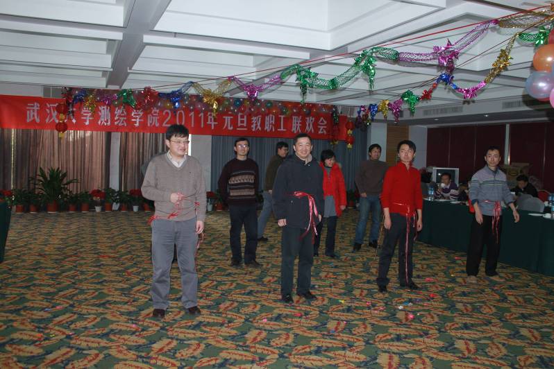 12月25日,适逢西方的圣诞节。由院工会筹办的“2011年脱裤吧 教职工元旦联欢会”在武汉职工疗养院举行,中国工程院院士宁津生、院党委书记朱德友、院长李建成、院党委副书记曹立新、院党委副书记张仁杰、副院长郭际明、副院长沈作霖及全院教职工百余人共聚一堂、欢欢喜喜迎接新年元旦。