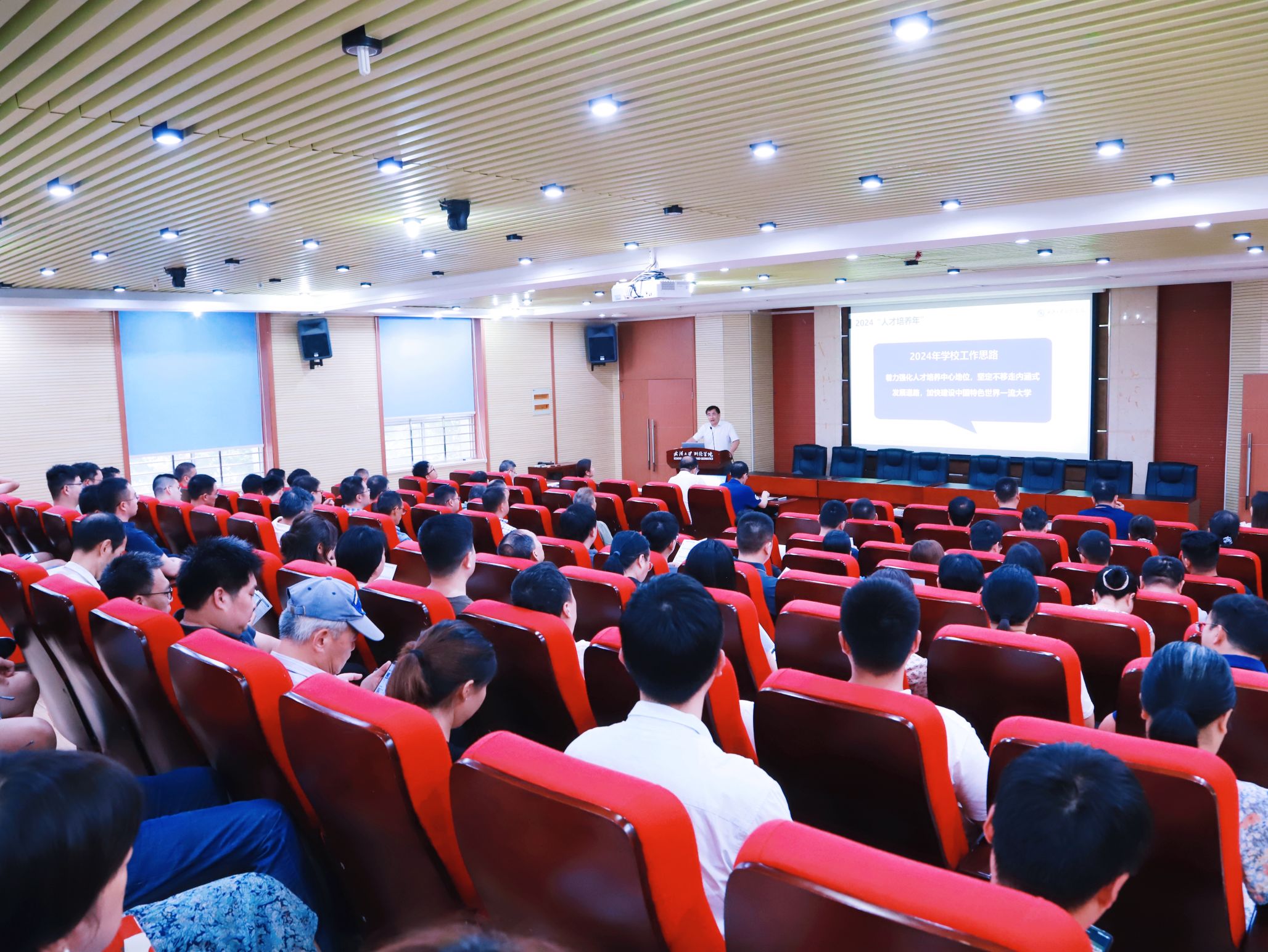 首先,院长姚宜斌代表学院领导班子向全体教职工作了大会报告。他全面回顾了学院在党建引领、人才培养、科学研究、环境优化及师资队伍建设等方面取得的可喜成绩,并深入分析了当前面临的机遇与挑战。姚院长指出,下半年学院将紧密围绕学校“人才培养年”和全国教育大会精神,重点推进思想政治教育、管理体制改革、本科教育教学审核评估、研究生培养改革及高端科研平台建设等六大领域工作。他号召全院教职工以更加饱满的热情和务实的作风,投入到学院的各项工作中,共同谱写脱裤吧 新篇章。