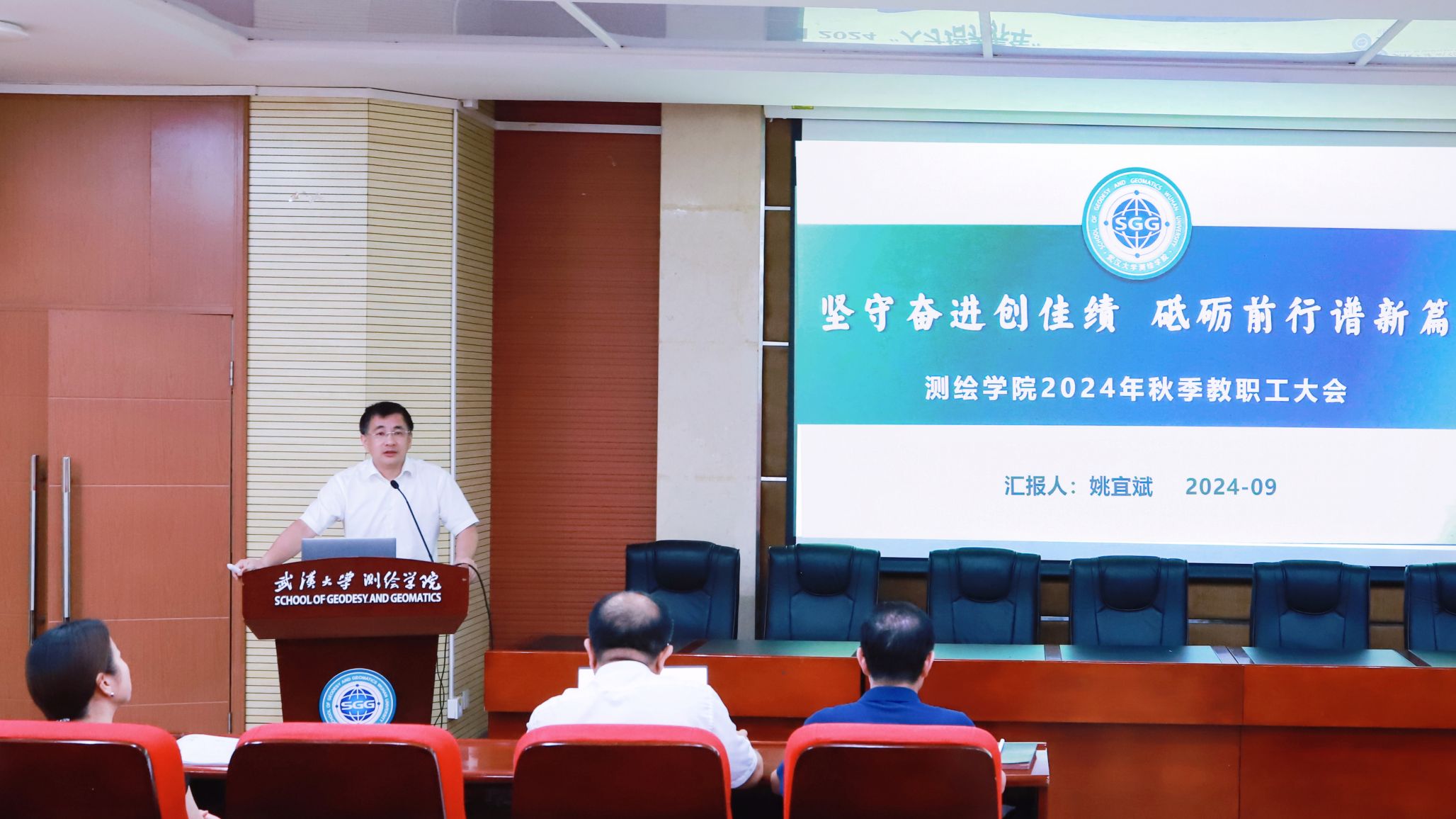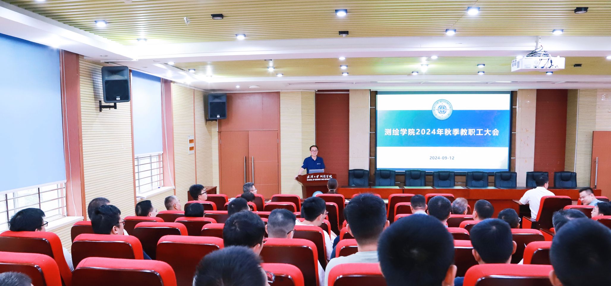 在金秋送爽、硕果累累的美好时节,学院于9月12日下午在202报告厅召开了秋季教职工大会。本次大会以“坚守奋进创佳绩,砥砺前行谱新篇”为主题,旨在总结上半年工作成果,部署下半年工作任务,进一步凝聚全院教职工的智慧和力量,推动学院建设与发展。大会由学院党委书记晏金柱主持。