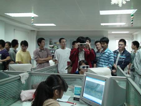 在朱永红经理的组织下,同学们首先组队参与互动游戏,在轻松愉快的气氛中,感悟“精诚团结”的公司文化,深刻感受到团队协作的重要性。随后,师生来到公司报告厅,听取技术开发部负责人程晓庆给大家介绍的摄影测量内业处理流程与方法及“无人机小数码”等摄影测量前沿技术报告,并就一些技术问题进行了深入的探讨。最后,师生们依次参观了公司三维建模研发部、易拼图研发部及生产部。同学们戴上特制眼镜,感受相片的立体效果,见习内业处理的整个过程。工作人员并就同学们感兴趣的问题进行了热情细致的解答。