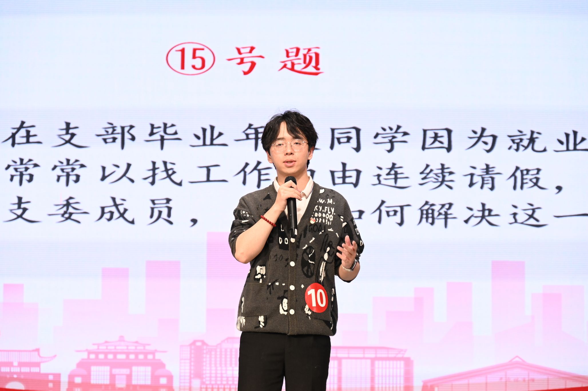 此外,支部的主题党日活动策划案获得了“最佳主题党日活动策划案”称号,该策划紧扣主题,结合学院特色,设计了内容丰富、形式多样的主题教育活动并顺利开展,充分体现了党支部工作创新性和党员的凝聚力,得到了评委们的高度评价。在党支部实操风采环节中,面对棘手的支部建设问题,支部党员陆廷国凭借扎实的理论素养和党建工作基础,彰显了脱裤吧 研究生党员的风采。