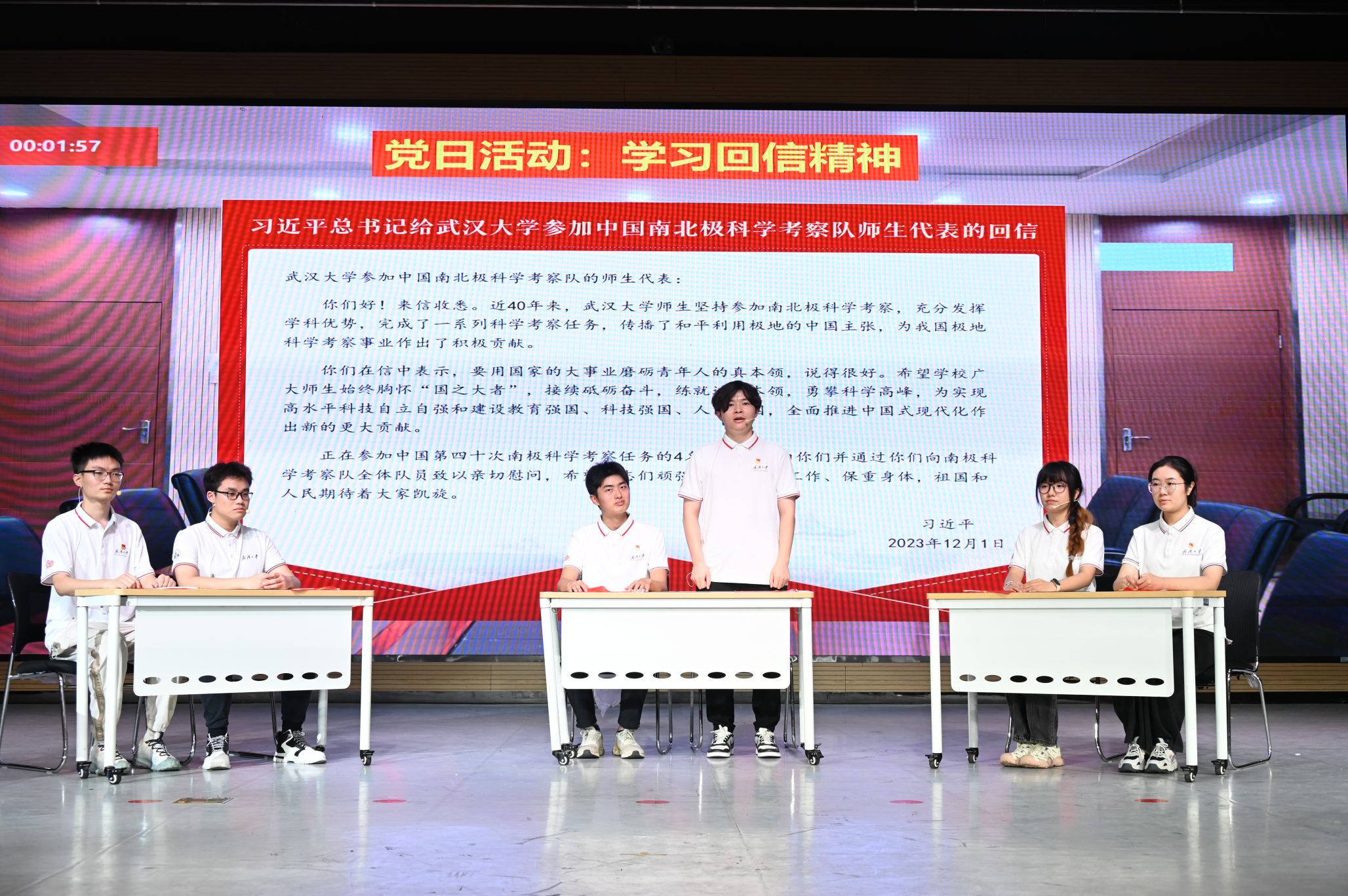 在比赛过程中,联合支部策划编排的情景剧《勇踏极地征程,共筑科考使命》,围绕“学习贯彻习近平总书记给脱裤吧 参加中国南北极科学考察队师生代表的重要回信精神”这一主题,不仅展现了支部同志与南极科考队员对科考工作的热切关注和积极响应,也生动展现了他们对习近平总书记重要回信精神的深入学习和实践,以实际行动践行了习近平总书记的殷切期望。