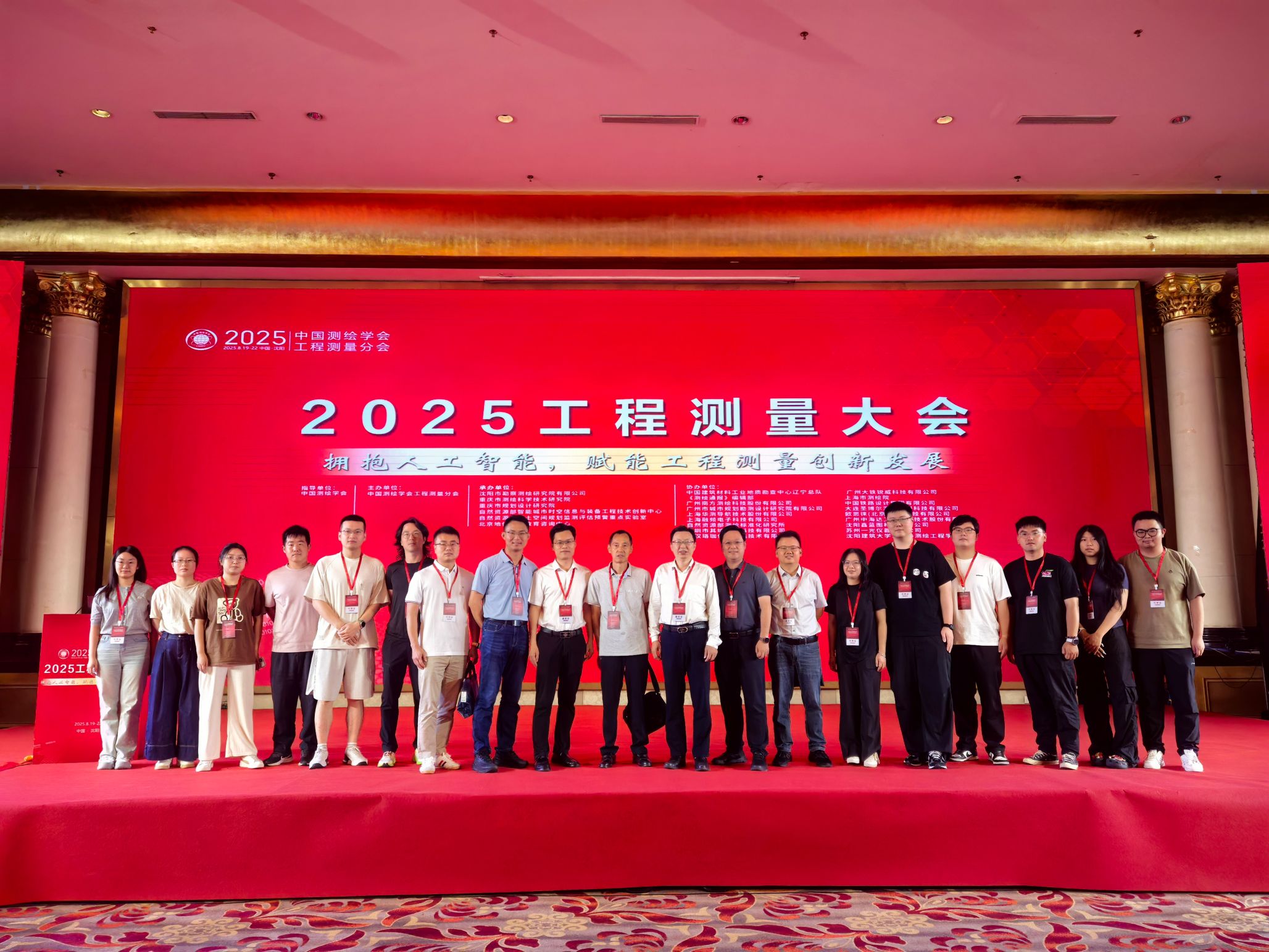 8月19日至22日,由中国测绘学会工程测量分会主办,沈阳市勘察测绘研究院有限公司、重庆市测绘科学技术研究院、重庆市规划设计研究院等六家单位联合承办的2025工程测量大会在沈阳成功举办。本次大会以“拥抱人工智能,赋能工程测量创新发展”为主题,来自全国工程测量领域的高校学者、科研院所专家、行业企业代表及科技工作者近700人与会,围绕人工智能与工程测量深度融合的前沿技术、实践应用及未来趋势展开深入交流。脱裤吧 邹进贵教授、花向红教授、史俊波教授等近20名师生代表参会,全程参与学术研讨与技术交流,充分展现了脱裤吧 在工程测量领域的科研实力与人才培养成果。