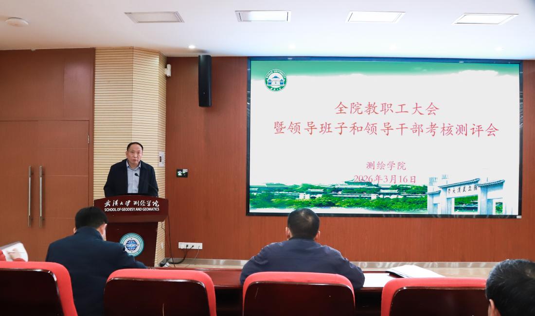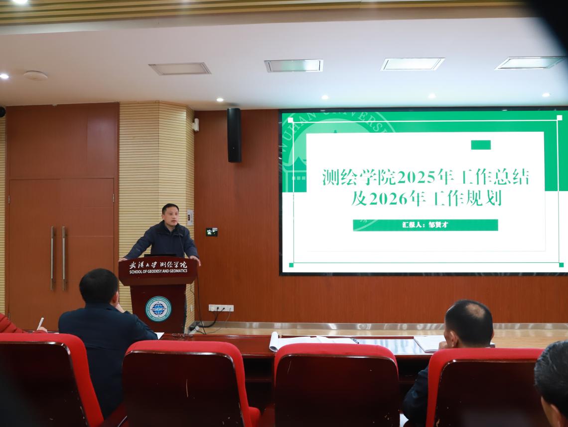 院长邹贤才就学院2026年重点工作进行部署。他首先梳理了学院2025年在人才培养与教育革新、学科建设与科研创新等方面的亮点和特色,深刻分析了学院发展当前面临的形势与挑战,并从专业建设与人才培养、招生改革与研究生培养、实验教学与实验室建设、思政引领与多维护航、学科建设与科研创新、学科创新发展与拔尖人才引进六个维度,提出了深入思考和工作设想,并布置了九个方面的重点工作。邹贤才指出,2026年学院工作将紧扣“十五五”规划谋篇布局,以测绘学科创建七十周年为契机,进一步明确重点任务,扎实推进各项工作落实落地。