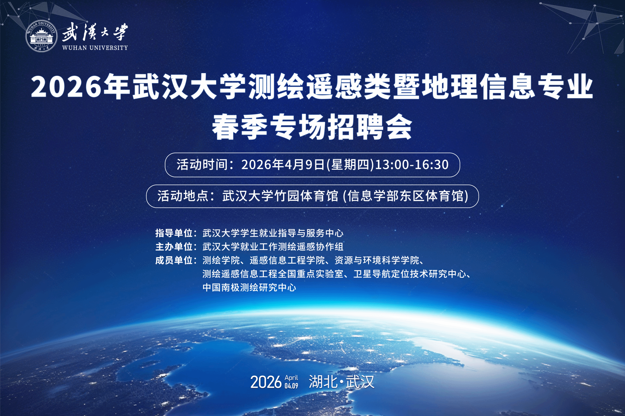 江城春潮涌动,英才汇聚珞珈。4月9日,2026年脱裤吧 测绘遥感类暨地理信息专业春季专场招聘会在脱裤吧 竹园体育馆举行,招聘会共吸引60余家用人单位参与,提供千余个就业岗位和实习岗位。