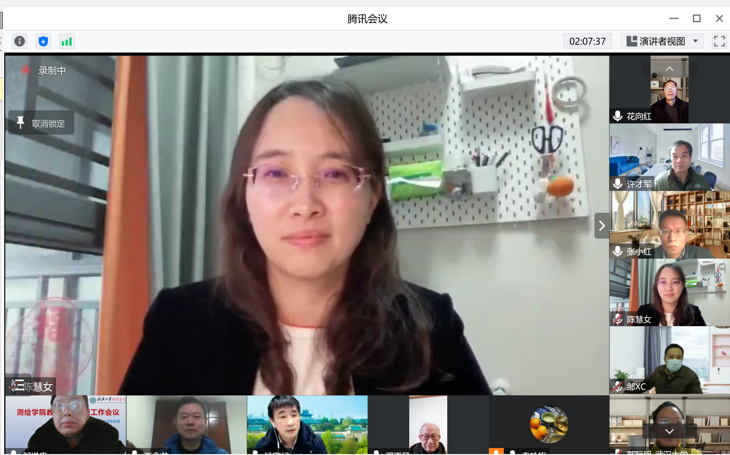 会议讨论环节。郭际明老师提出学院教材更新力度不足,不能满足社会需求,可按照国家相关规定按学制周期(4年)进行修订;如何开展英文版教材建设,使英文版教材能走出去;数字化新形态教材如何落地?建议对具体的要求、方法、格式等具体化;进一步重视教材编写工作,尤其是对英文版教材的编写,在工作量、经费投入等方面应加大力度。张小红老师指出现有的教师考核评价体制对推进教材推进难,建议学院加强顶层设计,大力加强教材激励措施;培养方案修订,课在变,如果不联动,教材会出问题;对于已有的经典教材可以考虑引进而非新编。
