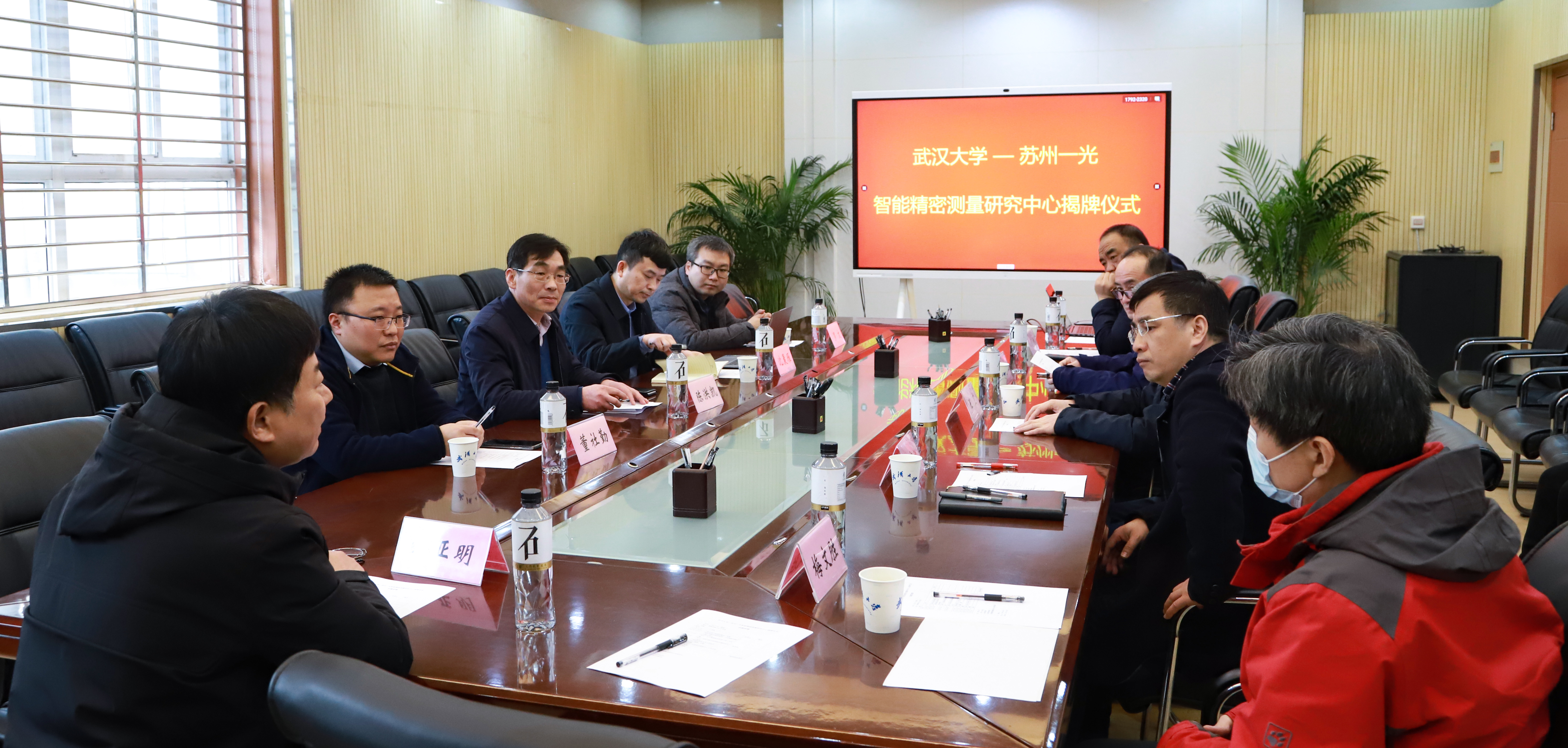 最后,双方单位领导为研究中心揭牌,所有与会人员合影留念。揭牌仪式后,苏州一光仪器有限公司来宾与研究中心科研人员进行了技术交流,各位专家、老师结合苏州一光仪器有限公司的产品及研究中心的研究方向提出了多项技术及研发方案,为后续工作奠定了基础。