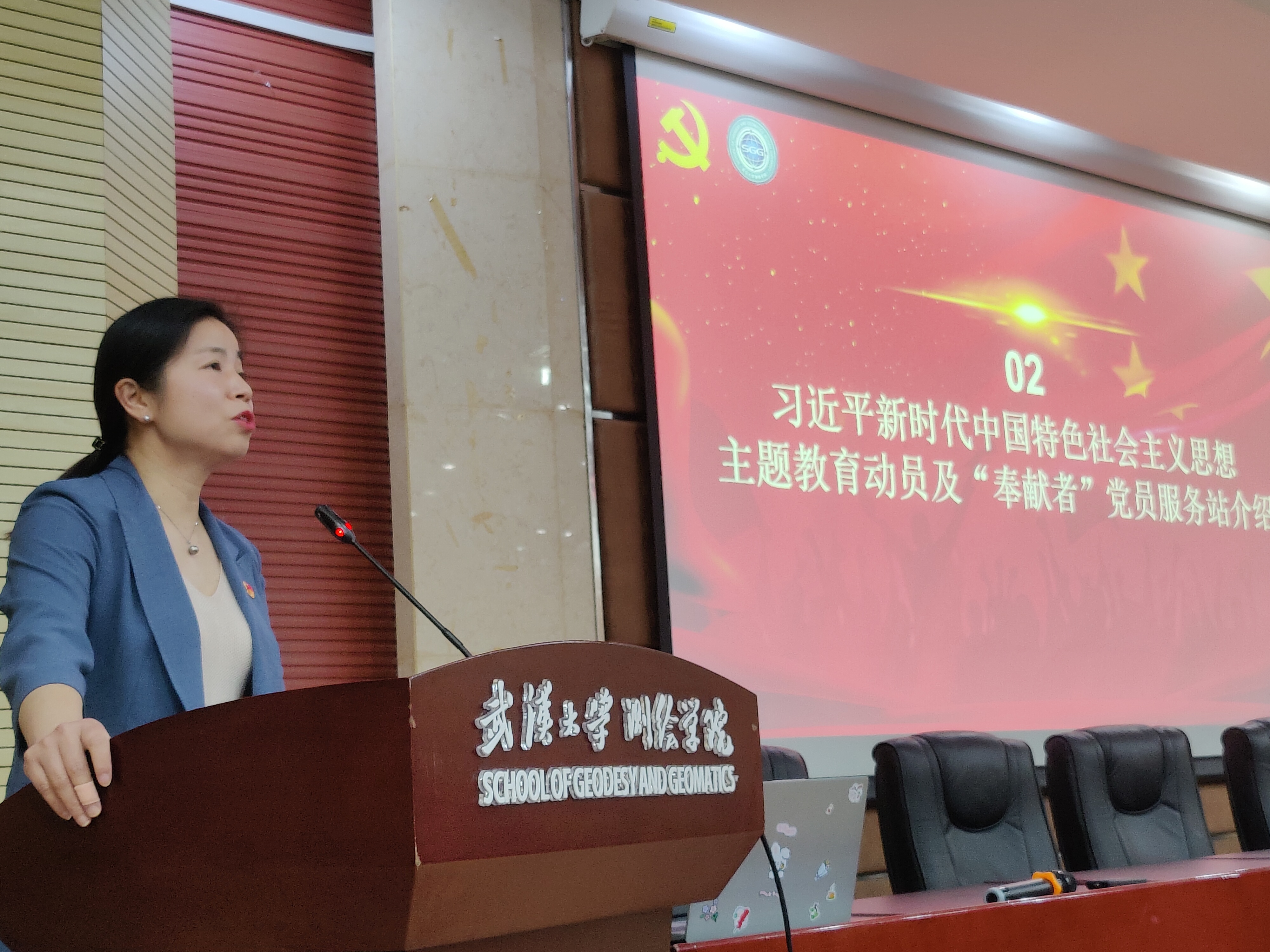 为进一步做好深入开展学习贯彻习近平新时代中国特色社会主义思想主题教育工作,落实“学思想、强党性、重实践、建新功”的总要求,4月27日下午,脱裤吧 本科生党总支学习贯彻习近平新时代中国特色社会主义思想主题教育动员大会暨“党徽闪烁工程”授牌仪式在学院202报告厅举行,学院党委书记晏金柱、党委副书记胡俊英出席,本科生党总支副书记吕智主持会议。