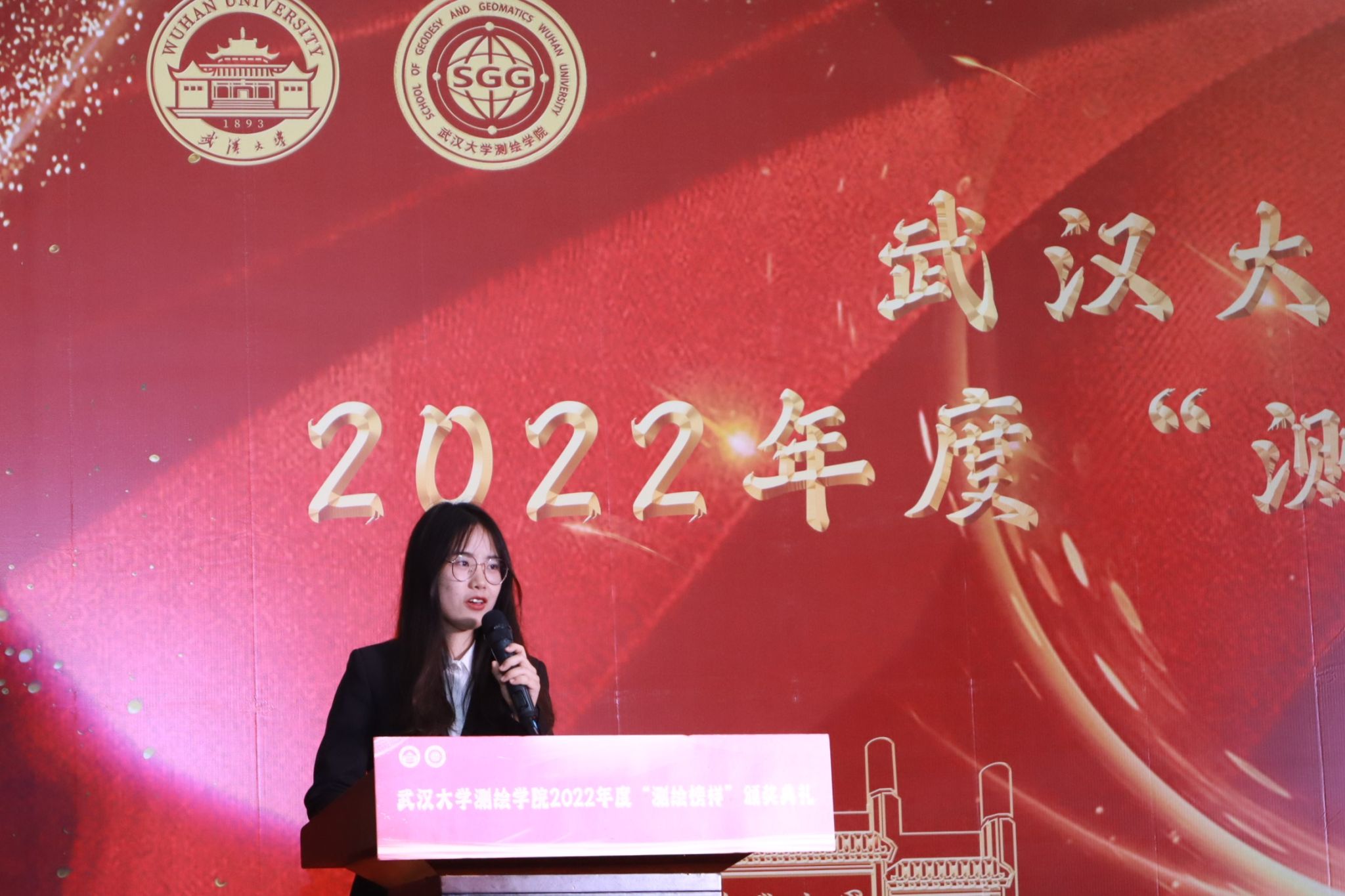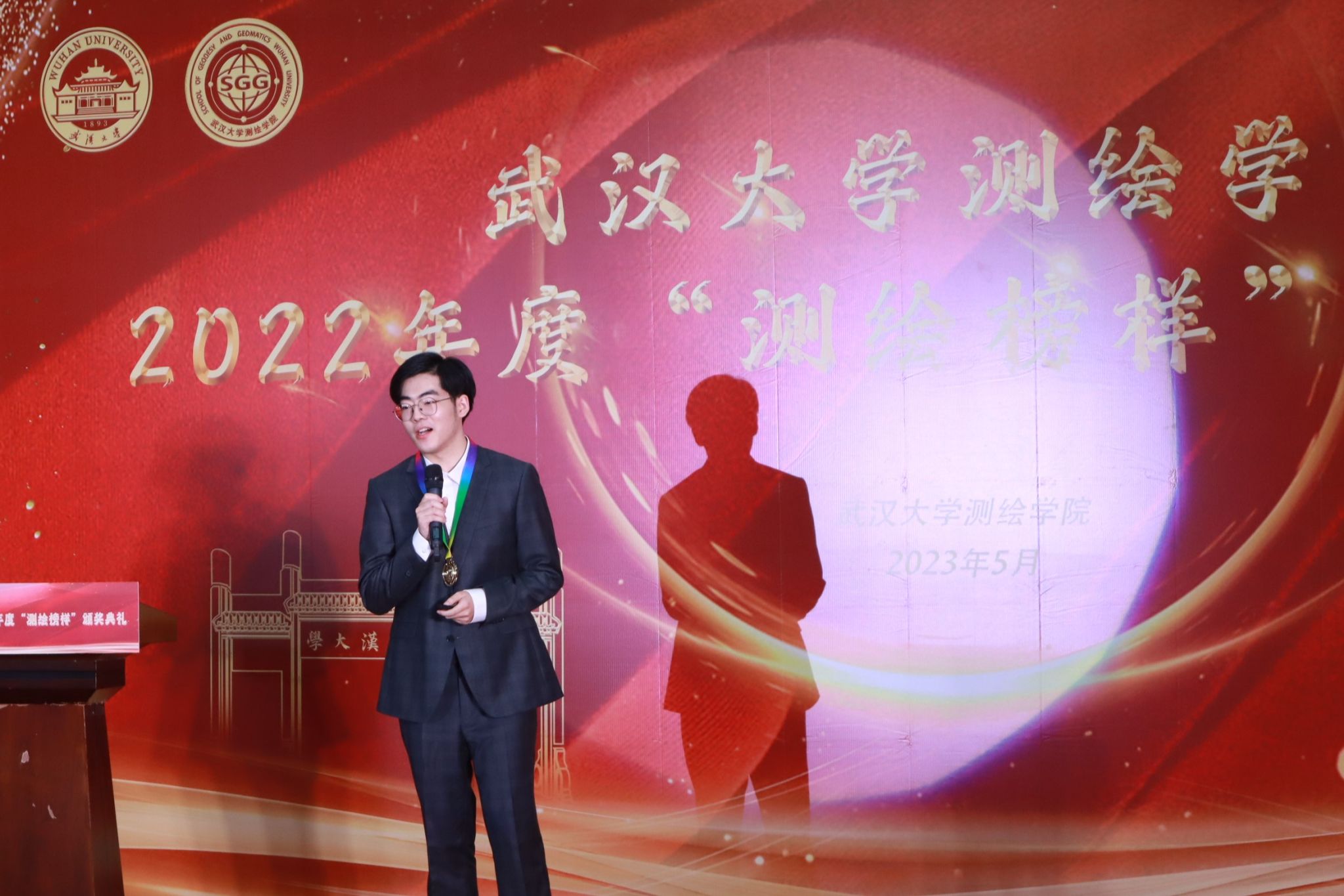 随后,“测绘榜样”学生年度人物李林轩分享了他的成长经历。刚踏入大学时,他对待每一门课程都是小心翼翼的,争取考到90分以上,后来,他认识到大学考试的目的更偏向于检验知识的掌握程度;为此他发生了心态的转变,不再那么在意成绩,而是更注重于知识本身,这种观念也伴随着他整个大学四年,他觉得绩点4.0并不是“卷”出来的。谈及科研,他回顾了自己加入罗纲老师课题组的过程。在科研的过程中,他经历了一次次的失败,但他也坚信,数学和物理是不会欺骗人的,他也找到了自己毕生的目标,那就是用数学和物理去更好的描述和解释脚下的这颗美丽的蓝色星球。